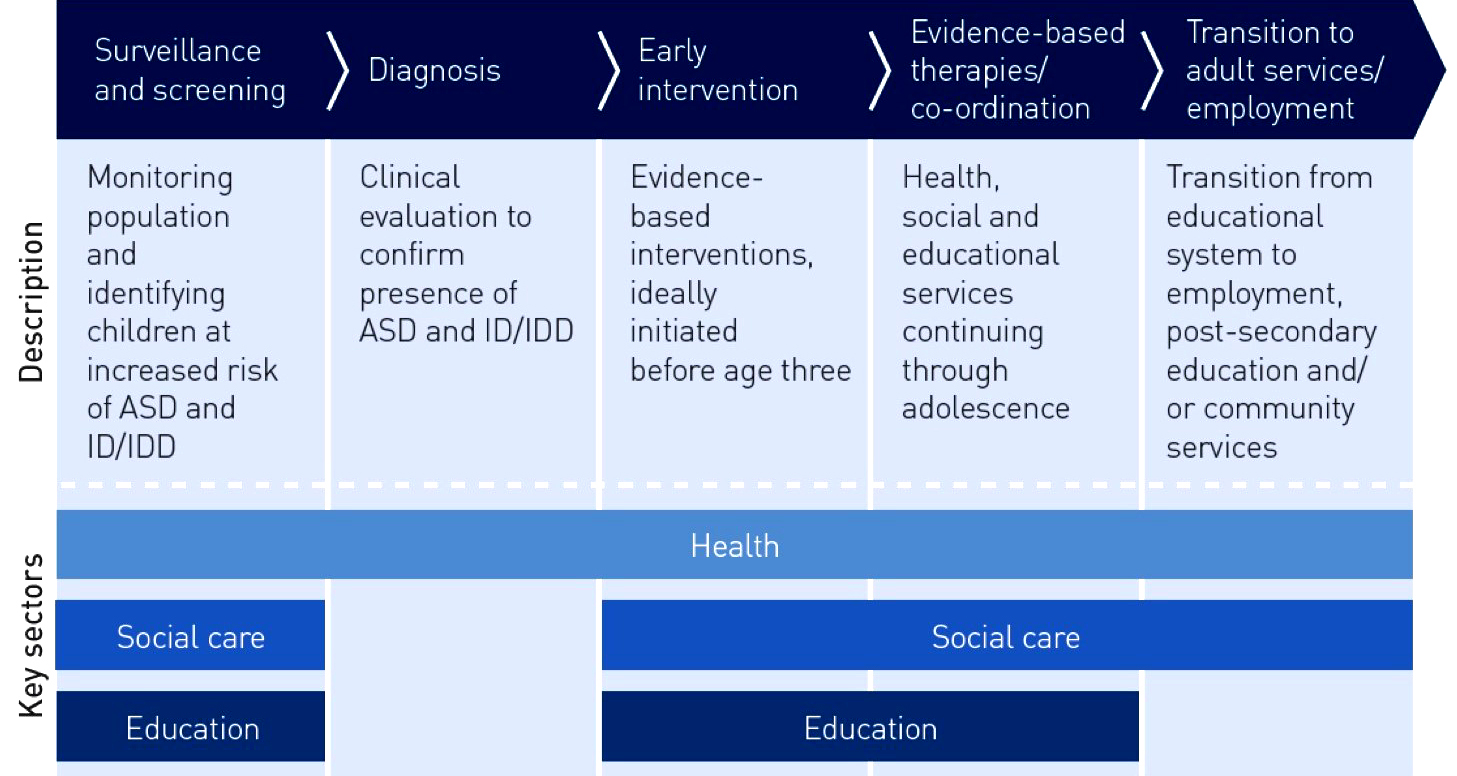 The report presentation outlines key issues in understanding the ASD journey captured inFigure 2 and the need to tackle the burden globally. The report presents goals, challenges and describes opportunities for action. It looks at solutions that are currently available and makes three key recommendations to policymakers to coordinate ASD response (16).