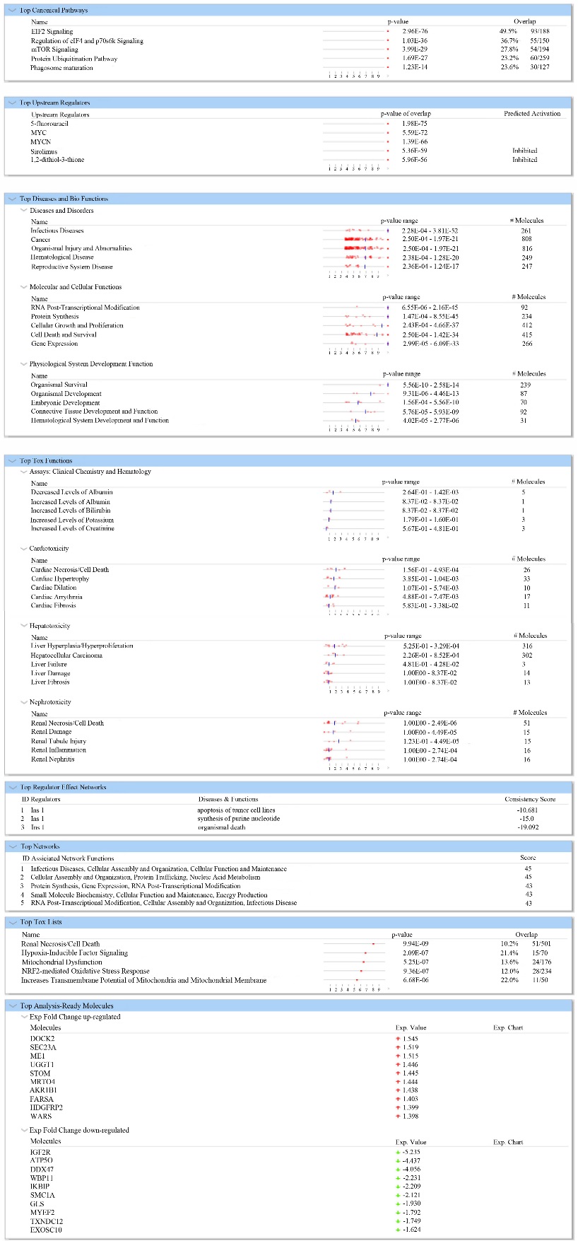 Ratio values (number of molecules in a given pathway that meet cut criteria, divided by total number of molecules that make up that pathway) and Uniprot Protein identification numbers for differentially expressed proteins were uploaded to Ingenuity Pathway Analysis (IPA, https://www.qiagenbioinformatics.com/products/ingenuity-pathway-analysis/), and pathways and networks were analyzed as described previously (16, 17). Simply, up- and down-regulated identifiers were defined as value parameters for the analysis and generated networks were ordered according to a significance score. The Fisher Exact test p-value was used to analyze significance of canonical pathways and biofunctions. Canonical pathways were grouped in Metabolic Pathways and Signaling Pathways. Biofunctions were grouped into Disease and Disorders, Molecular and Cellular Functions, and Physiological System Development Function.