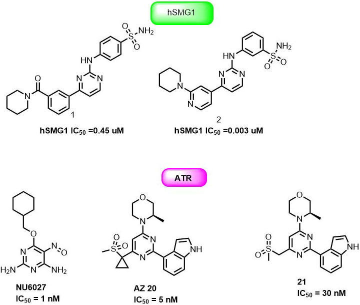 Figure 11Pyrimidine scaffolds as ATR and hSMG1 inhibitors.
