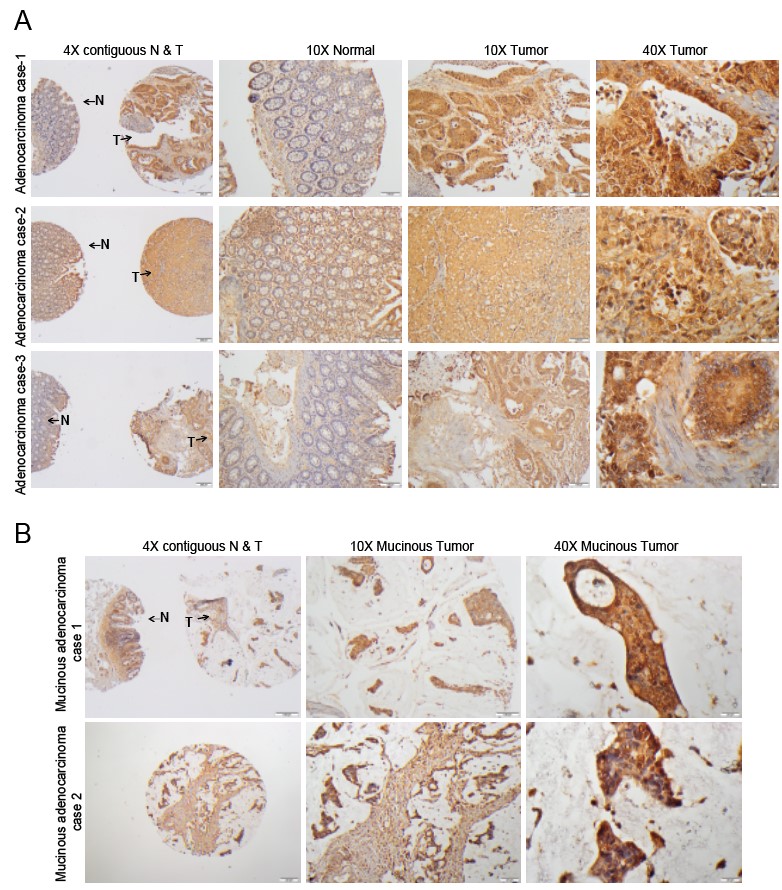 different adenocarcinoma cases to show MICA staining in TMA tissues using IHC