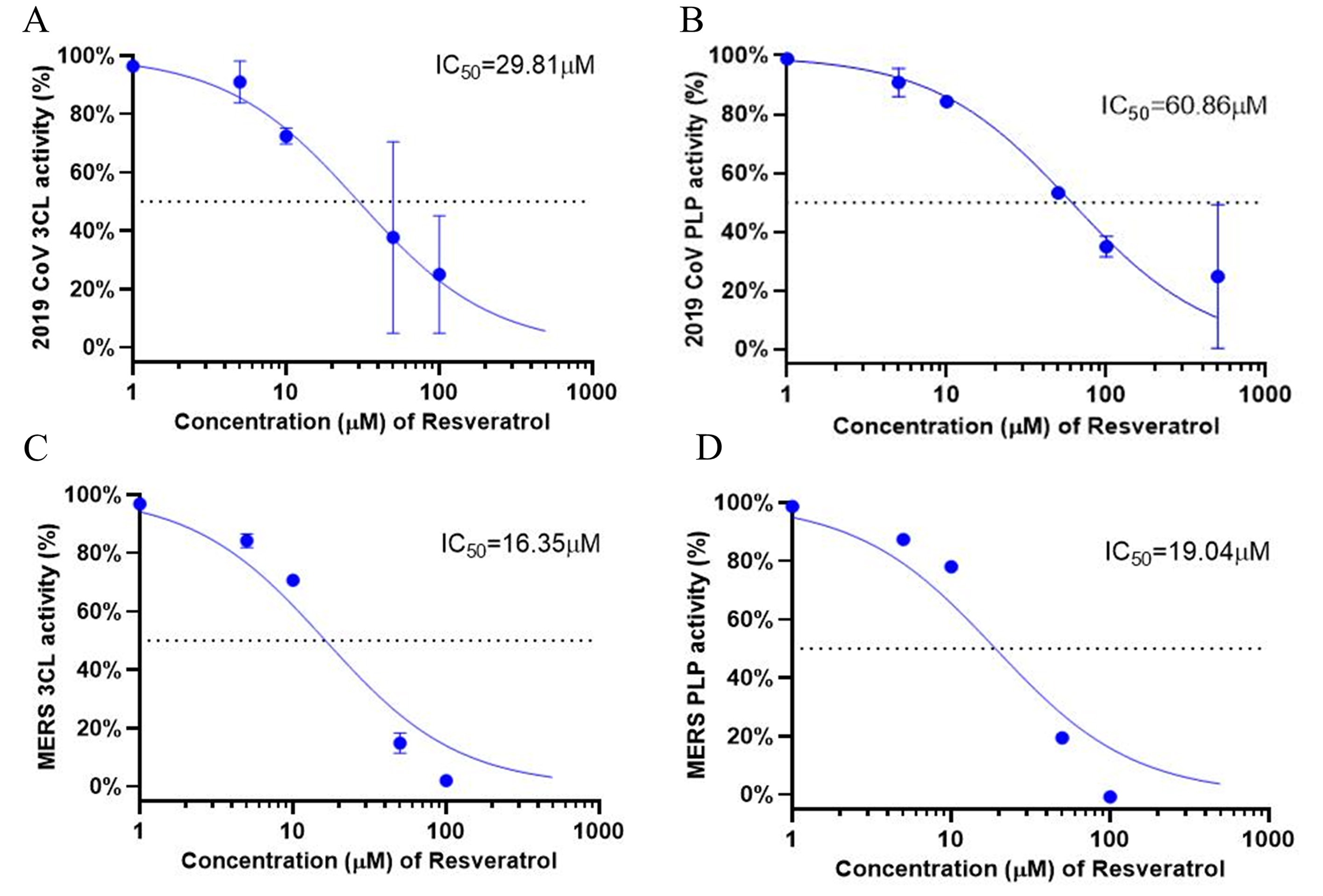 SARS-CoV-2 3CLpro and PLpro. We found that polydatin and resveratrol revealed the