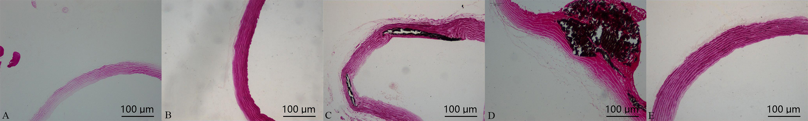 After model rats were anesthetized with 2% pentobarbital sodium (40 mg/kg), plasma, serum, and aorta (the whole length of thoracic and abdominal aorta) were collected for detection, detailed information are described as below.