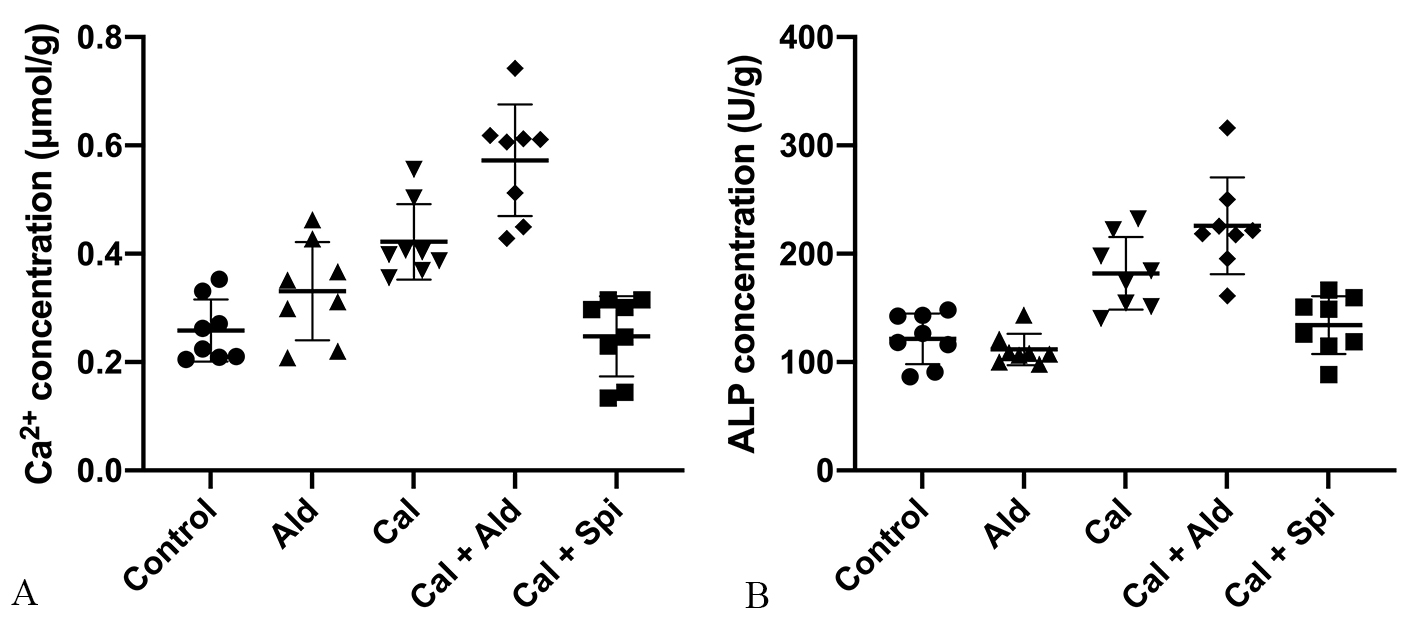 activity of ALP in the aorta tissue. (A) Calcium content in the aorta (Mean