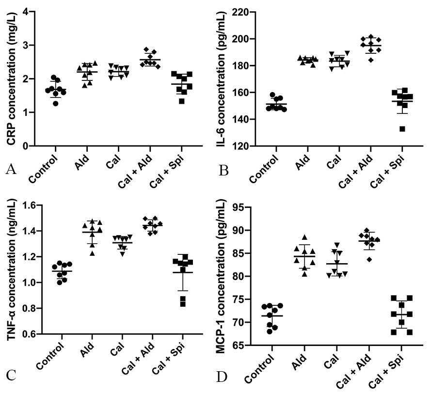 Compared with control group, the content of the MCP-1 was increased by 18.37%