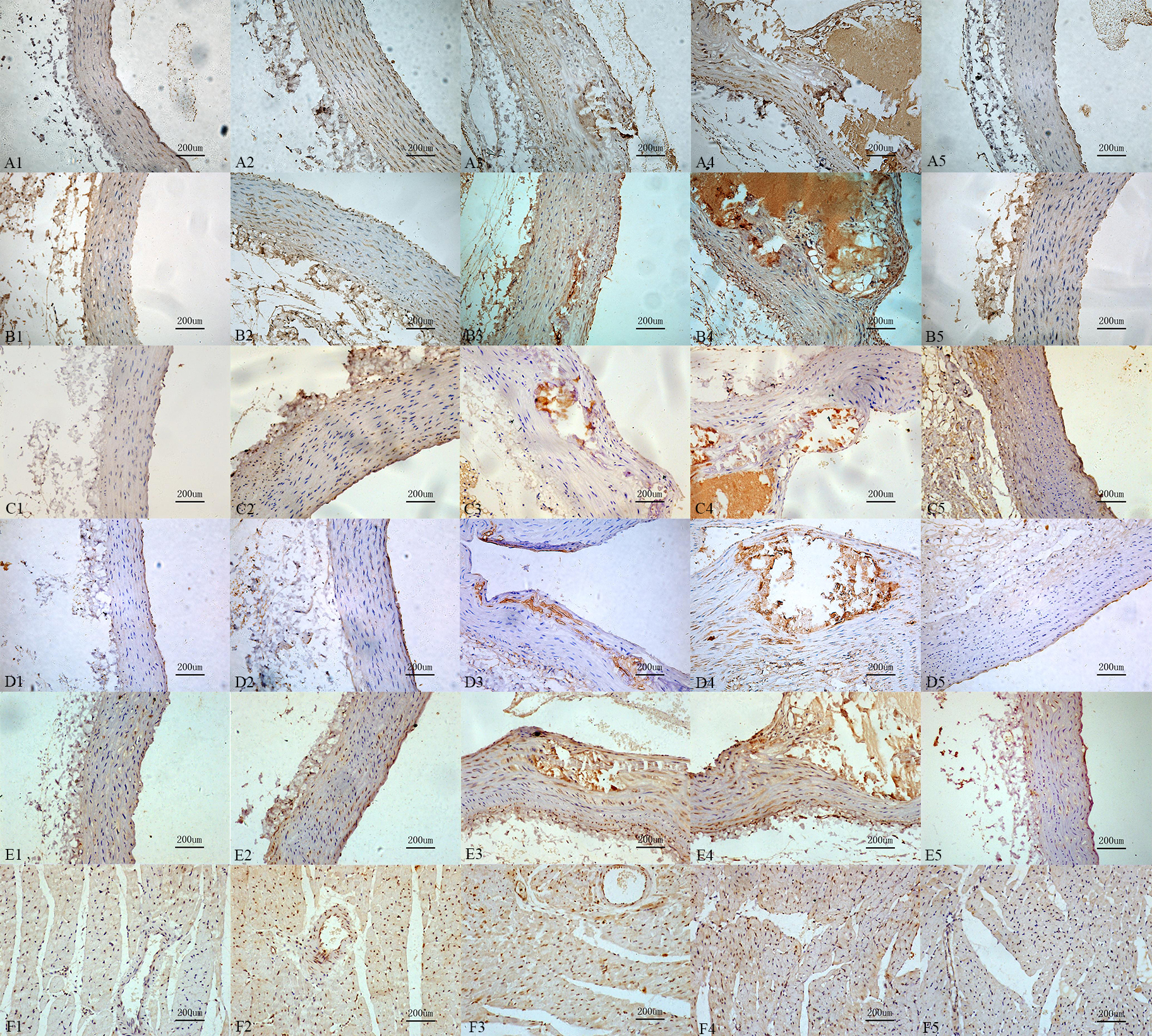 After 6 weeks of hypodermic injection of aldosterone, the noninvasive blood pressure and cardiac weight index of rats were increased, and we observed the weight loss, which proved aldosterone’s effect. Besides, the noninvasive blood pressure, weight loss, and cardiac weight index for calcification group were shown in Fig. 1.