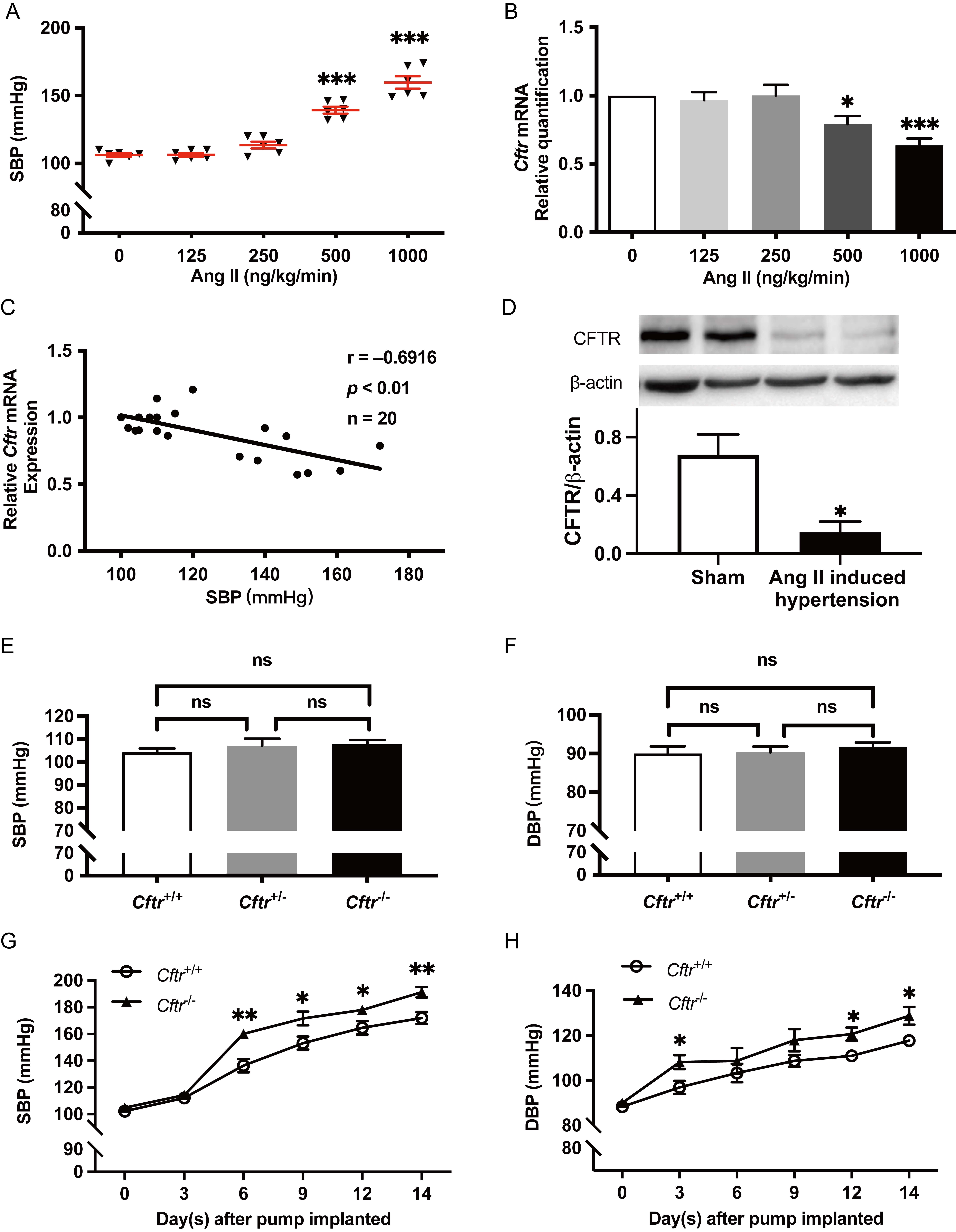 Ang II induced hypertension models were established using Cftr,