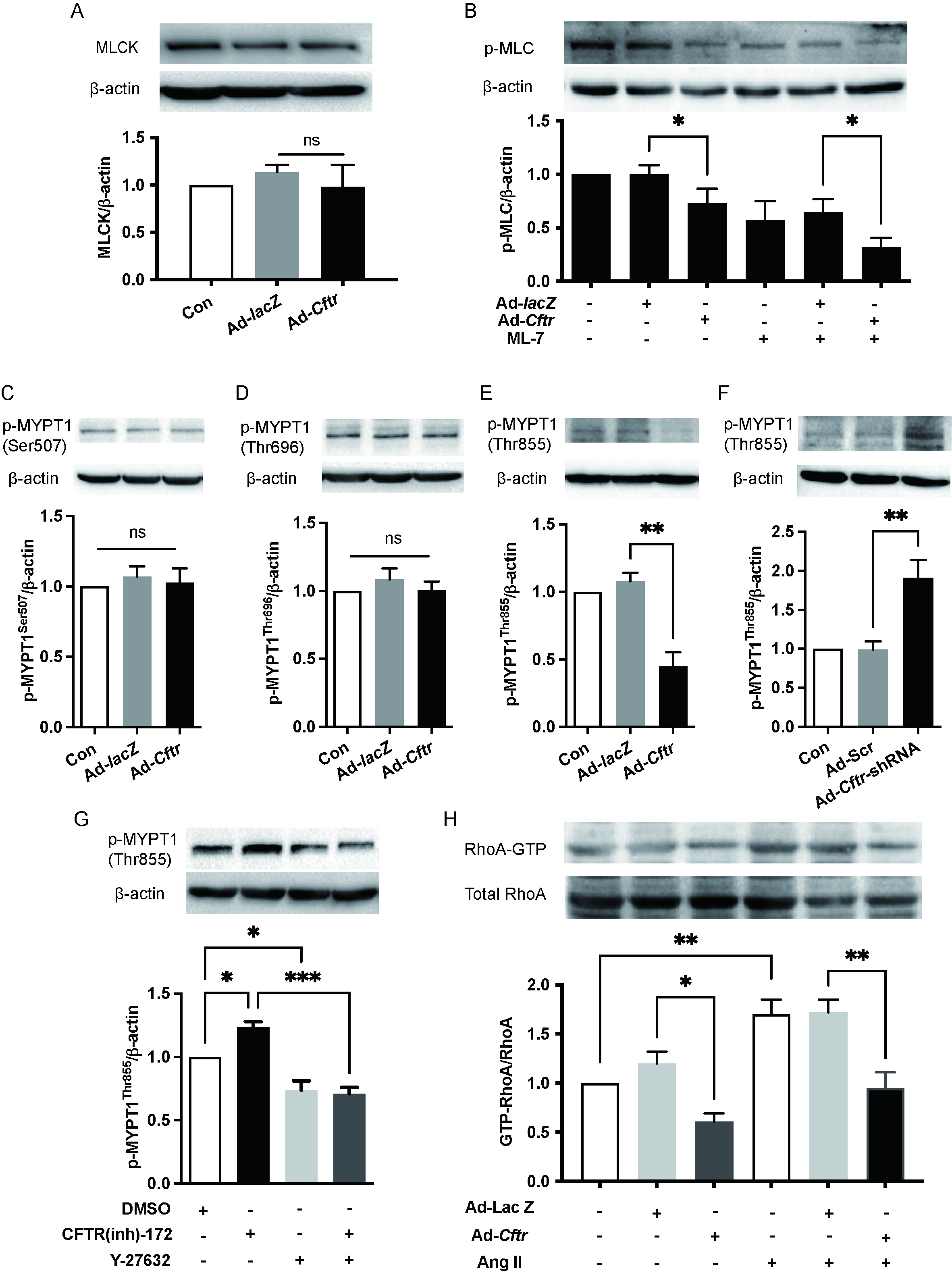 MYPT1 phosphorylation in VSMCs. CFTR protein expression level affected Ang II