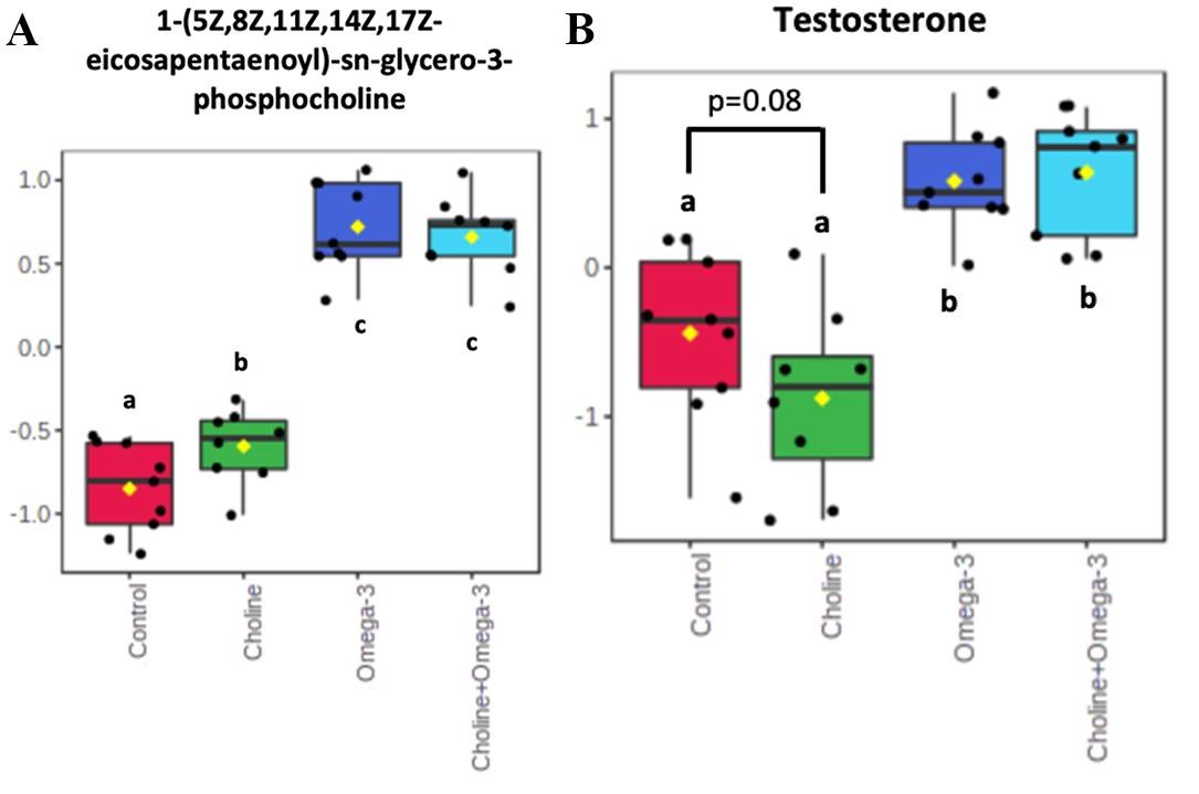| Item | Control | Choline | Omega-3 | Choline + Omega-3 | SEM |