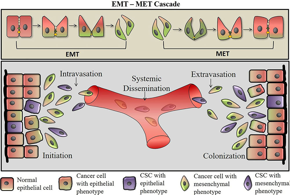Initiation of tumor growth at the secondary site is the rate-limiting step in metastasis. Therefore, a key feature of a successful metastatic cell is cellular plasticity i.e., the ability to undergo EMT and subsequently transit to MET in the appropriate microenvironments.