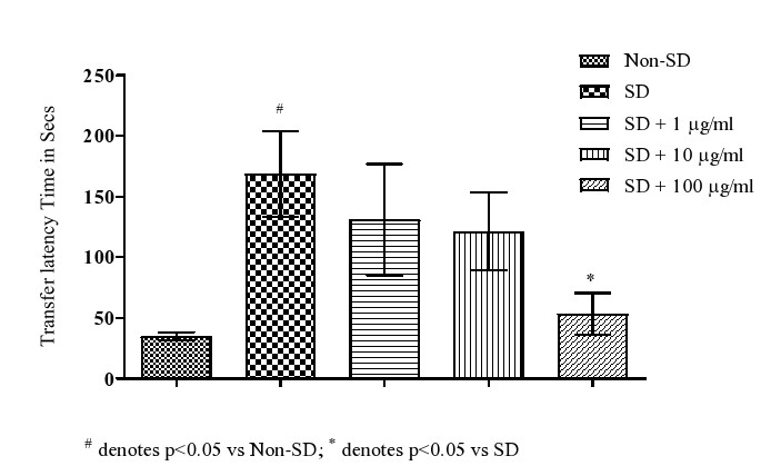 Light-Dark cycle is the major zeitgeber for circadian rhythm in most animals. Reports indicate that light possesses suppressive effect on sleep in Zebrafish, with no sleep rebound and consequent stress [19]. Sigurgeirsson et al. [20] compared SD induced by extended exposure to light and electric shock methods and found that normal sleep is altered by exposure to light and extended exposure to light causes less deviation from normal sleep wake states [20]. Hence, in the present study we have used light protocol to induce SD in Zebrafish and to evaluate its effect on learning and memory. SD protocol was carried out according to Pinheiro-da-Silva et al. [21].