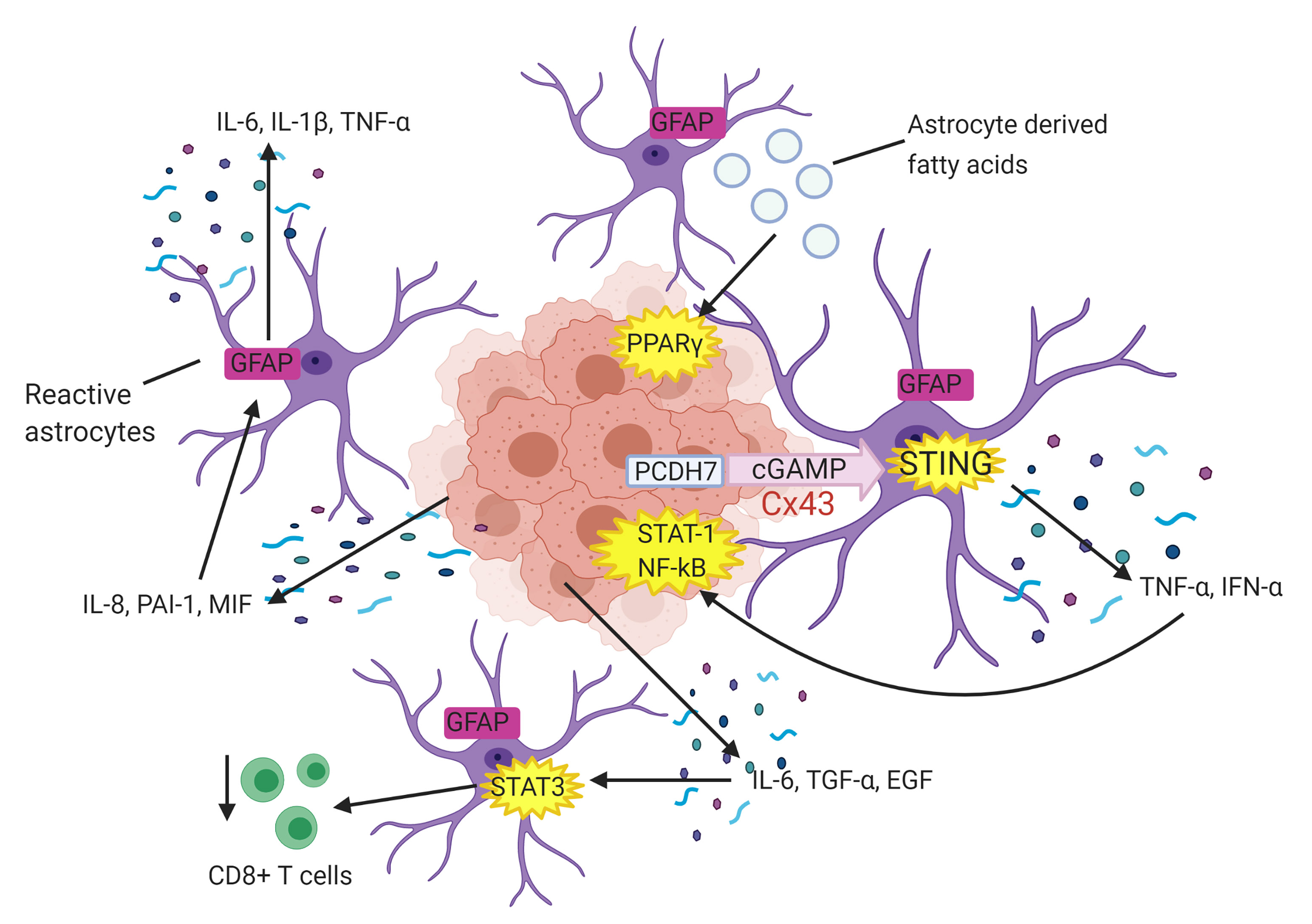 developing cancer microenvironment, astrocytes instead play a pro-tumourigenic