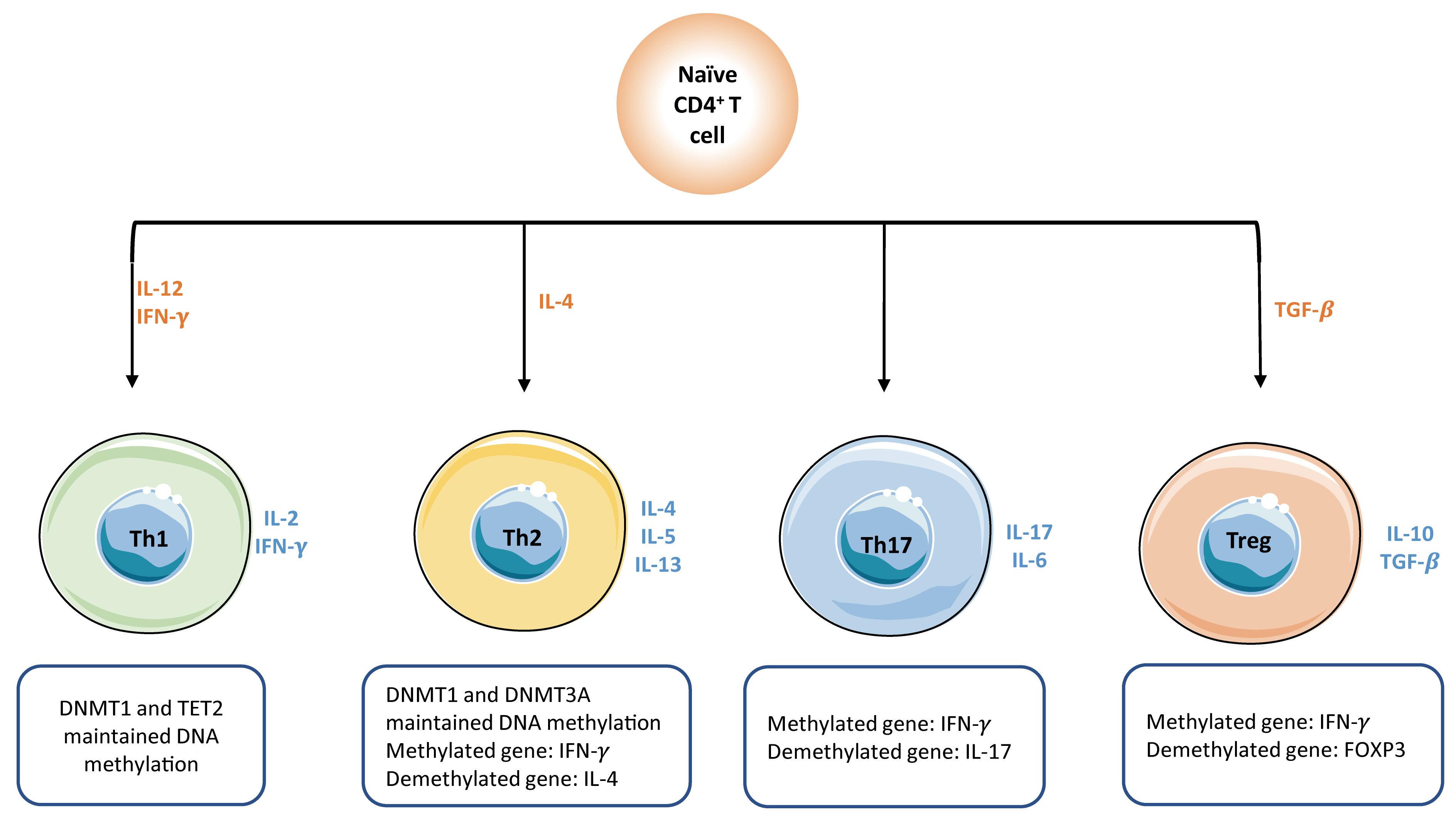 Fig. 2.Epigenetic reprogramming on T cells. Naïve T cells will be