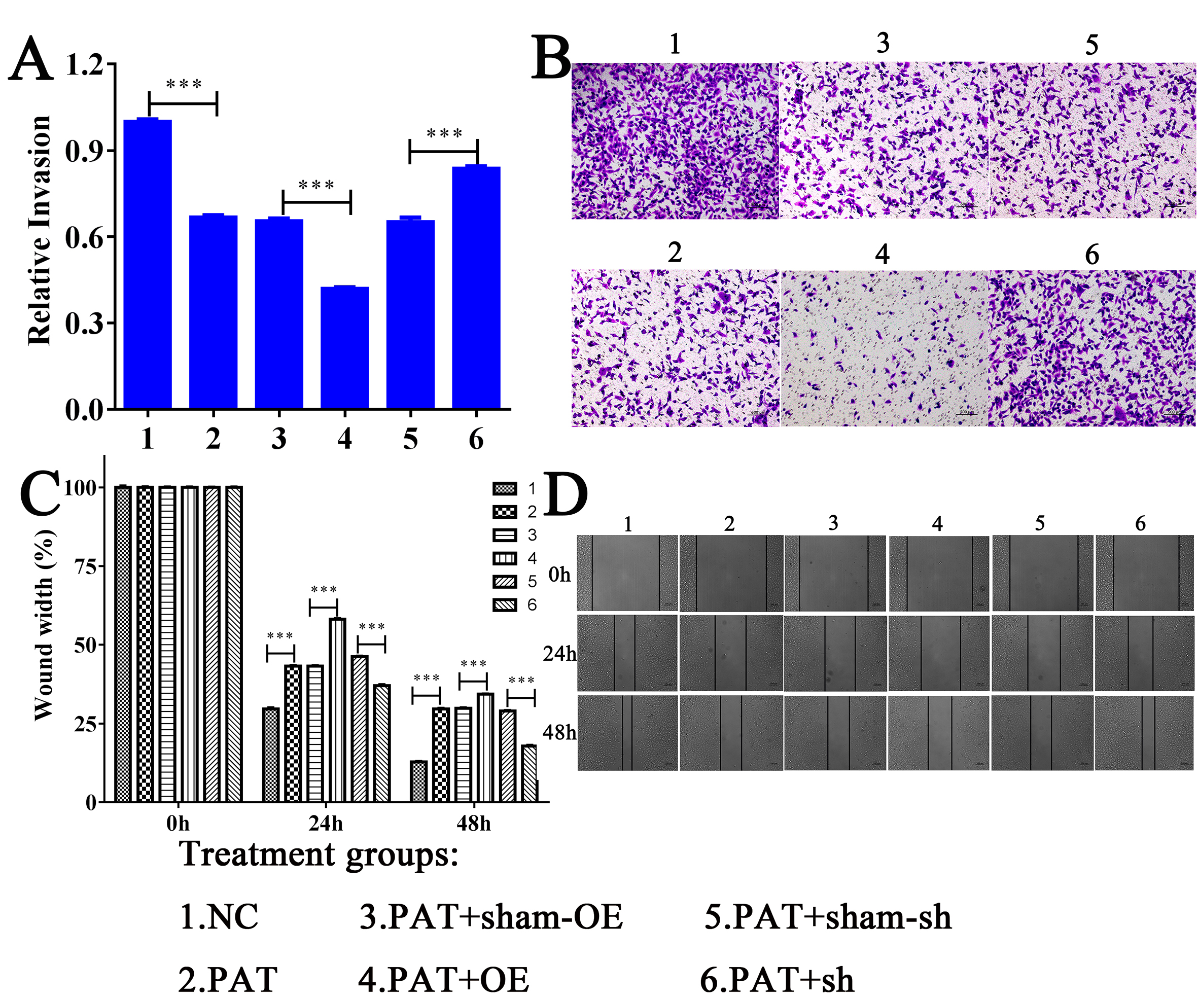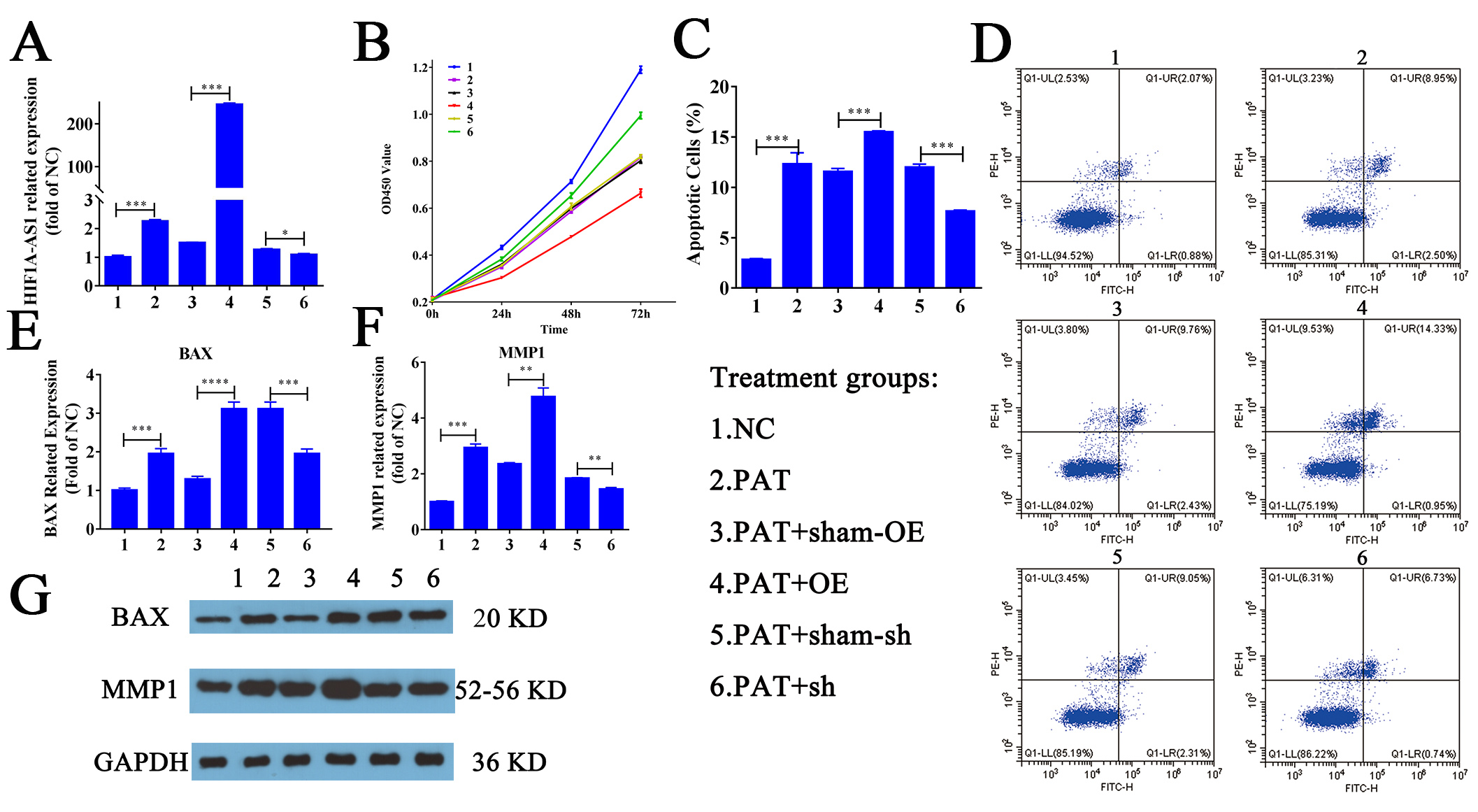 (OE) (HIF1A-AS1 overexpressed in PAT), PAT + sham-OE (PAT transfected