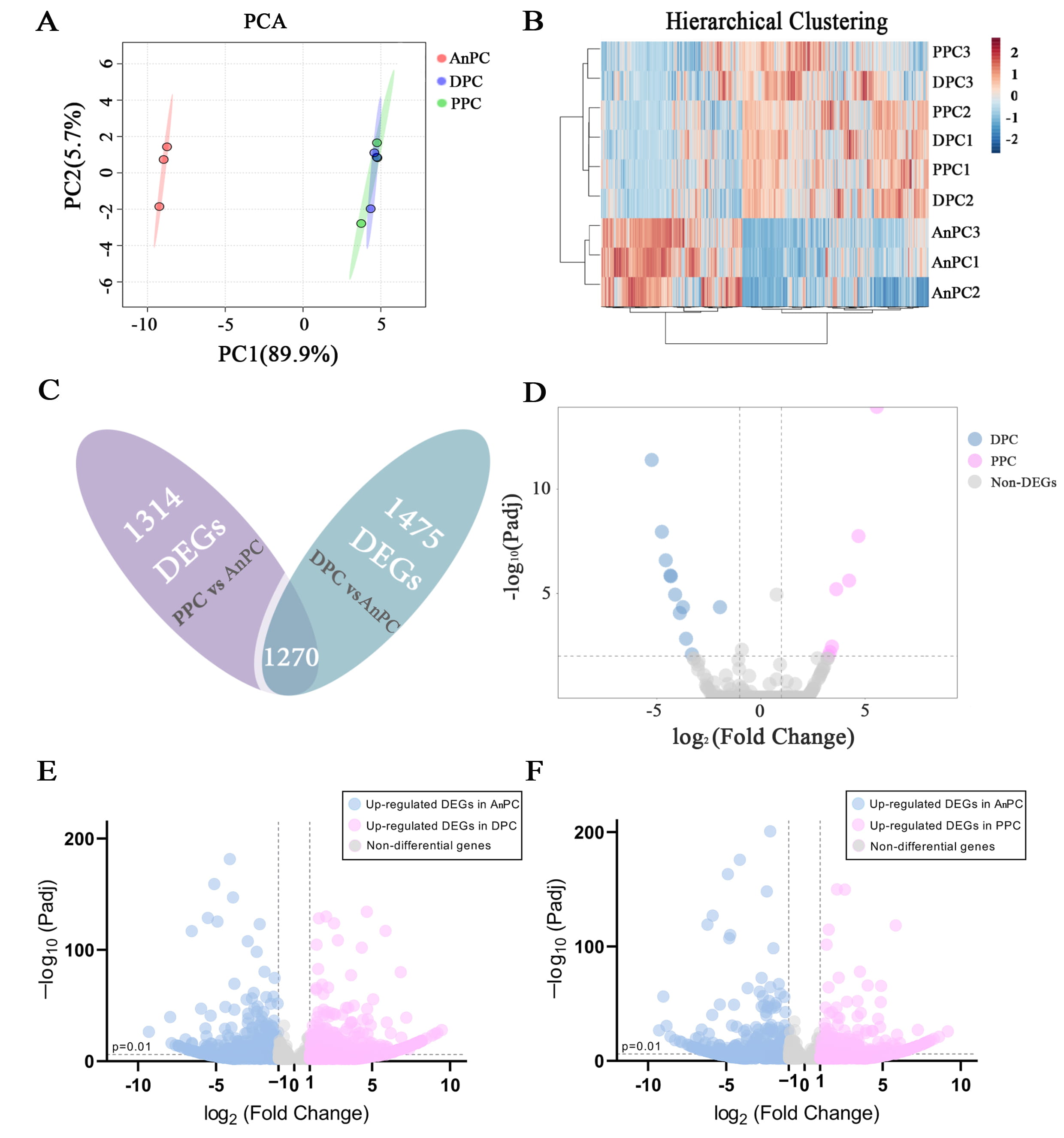 existed between DPC and AnPC (Fig. 3E) and 1314 DEGs exited between PPC and AnPC