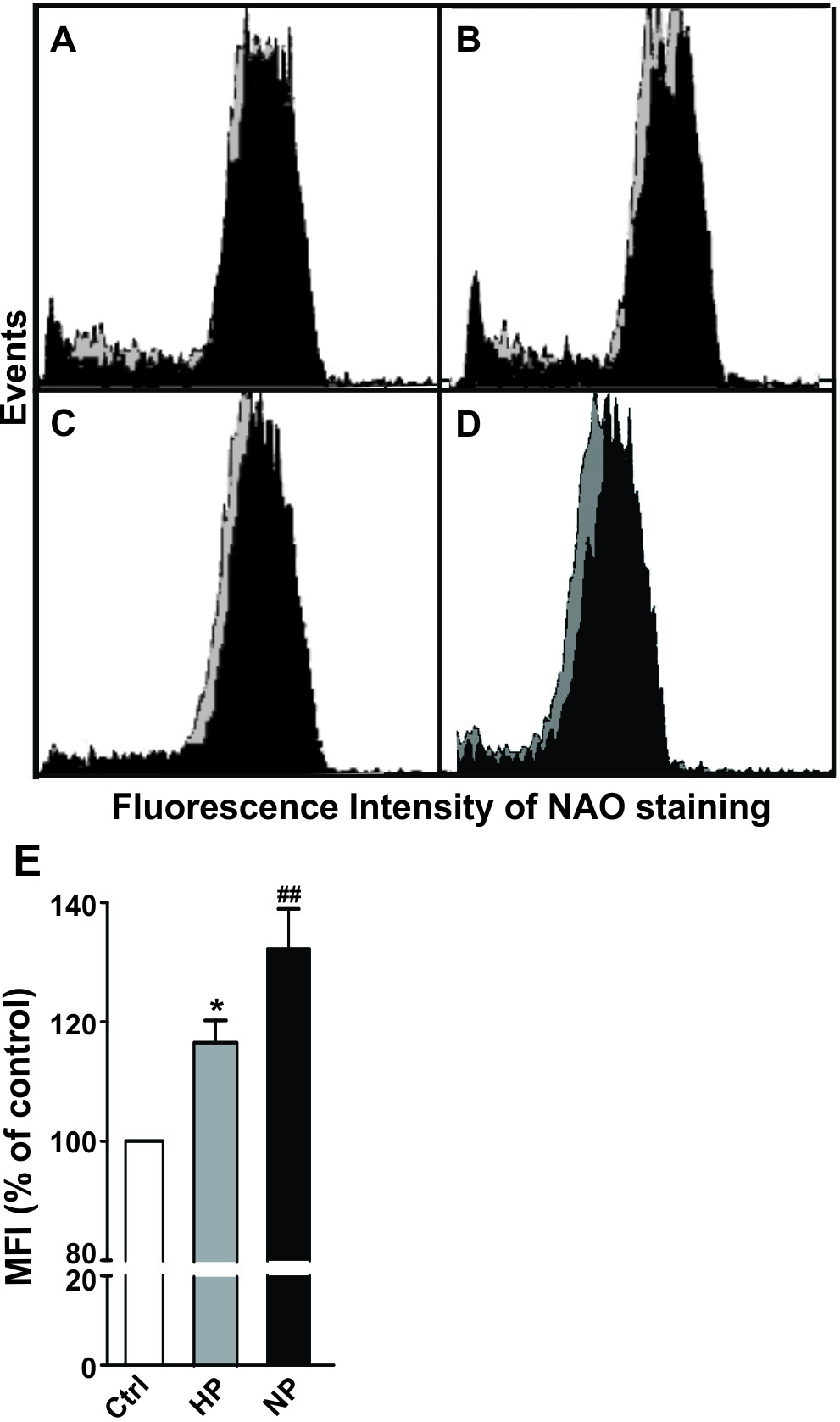 (measured by flow cytometry of NAO fluorescence) and increased expression of