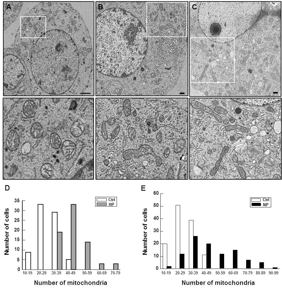 Mitochondria are dynamic organelles that are not synthesized de novo, but are formed from pre-existing organelles through fusion and fission. This results in the formation of constantly changing intracellular tubular networks observed in Figs. 4,7. Through mitochondrial fission, smaller mitochondria are created to which new mitochondrial contents created during mitochondrial biogenesis can be added. Mitochondrial biogenesis, in turn, requires the synthesis of new mtDNA, new proteins and membrane components. The observed activation of transcriptional regulatory networks (Fig. 3) clearly indicate that these processes indeed occur during the preconditioning treatments.