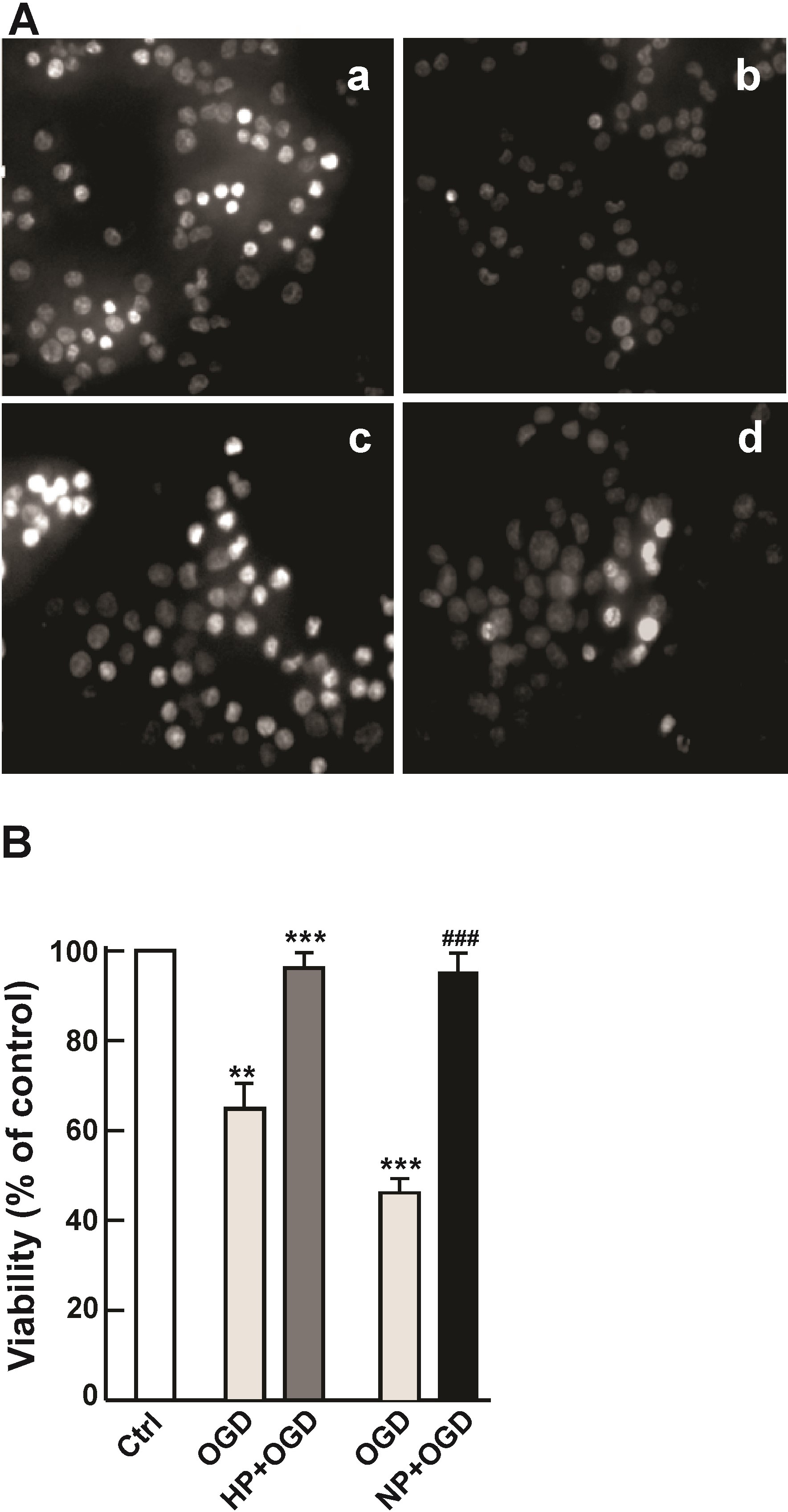 OGD (Fig. 5A,a,c, numerous pyknotic nuclei), the preconditioned cell cultures