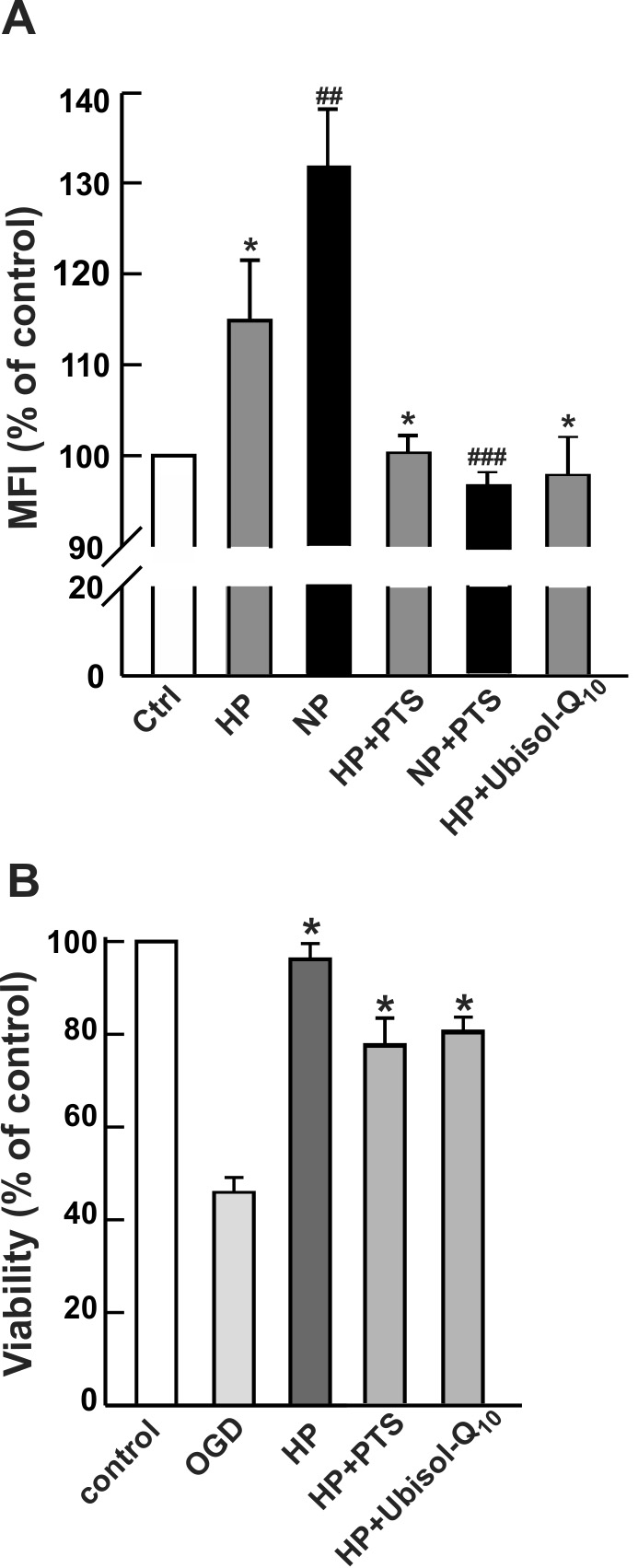 hypoxia (HP) or NO (NP) in the absence or presence of antioxidant PTS