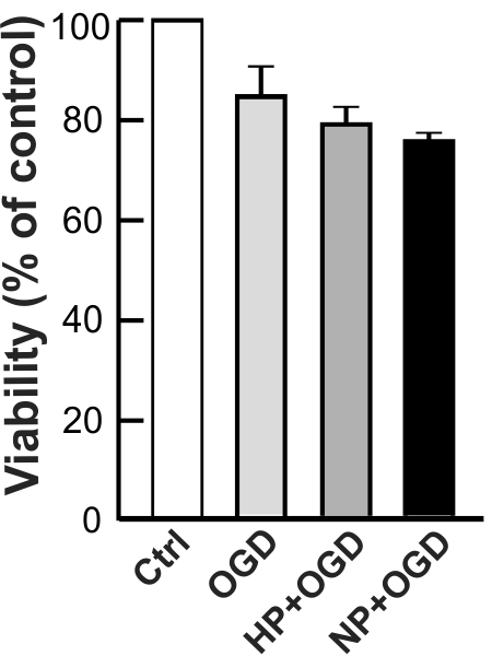 subsequent OGD stress. PC12 cells, untreated and preconditioned by HP or NP,