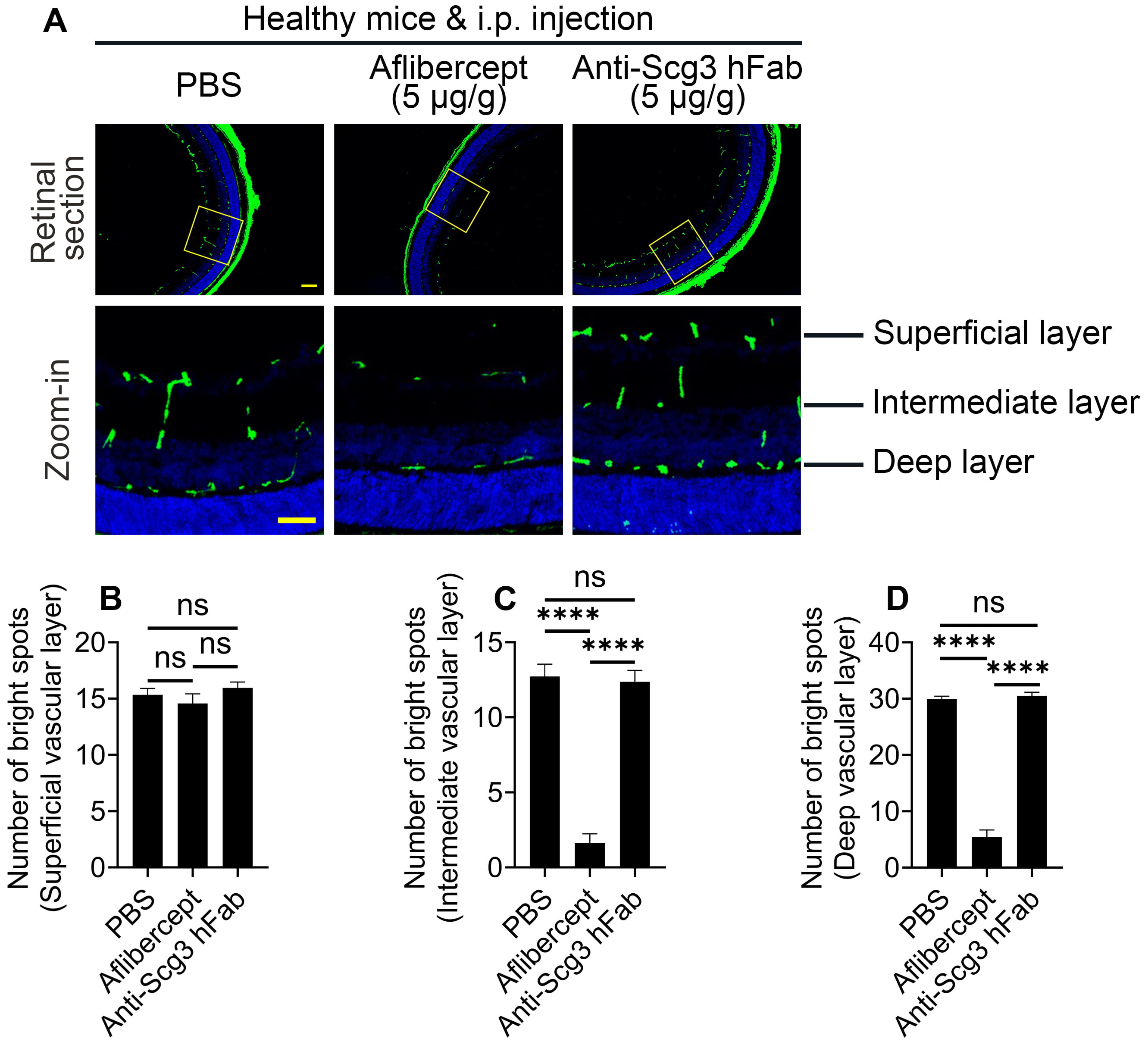 physiological retinal angiogenesis. Aflibercept, anti-Scg3 hFab (5