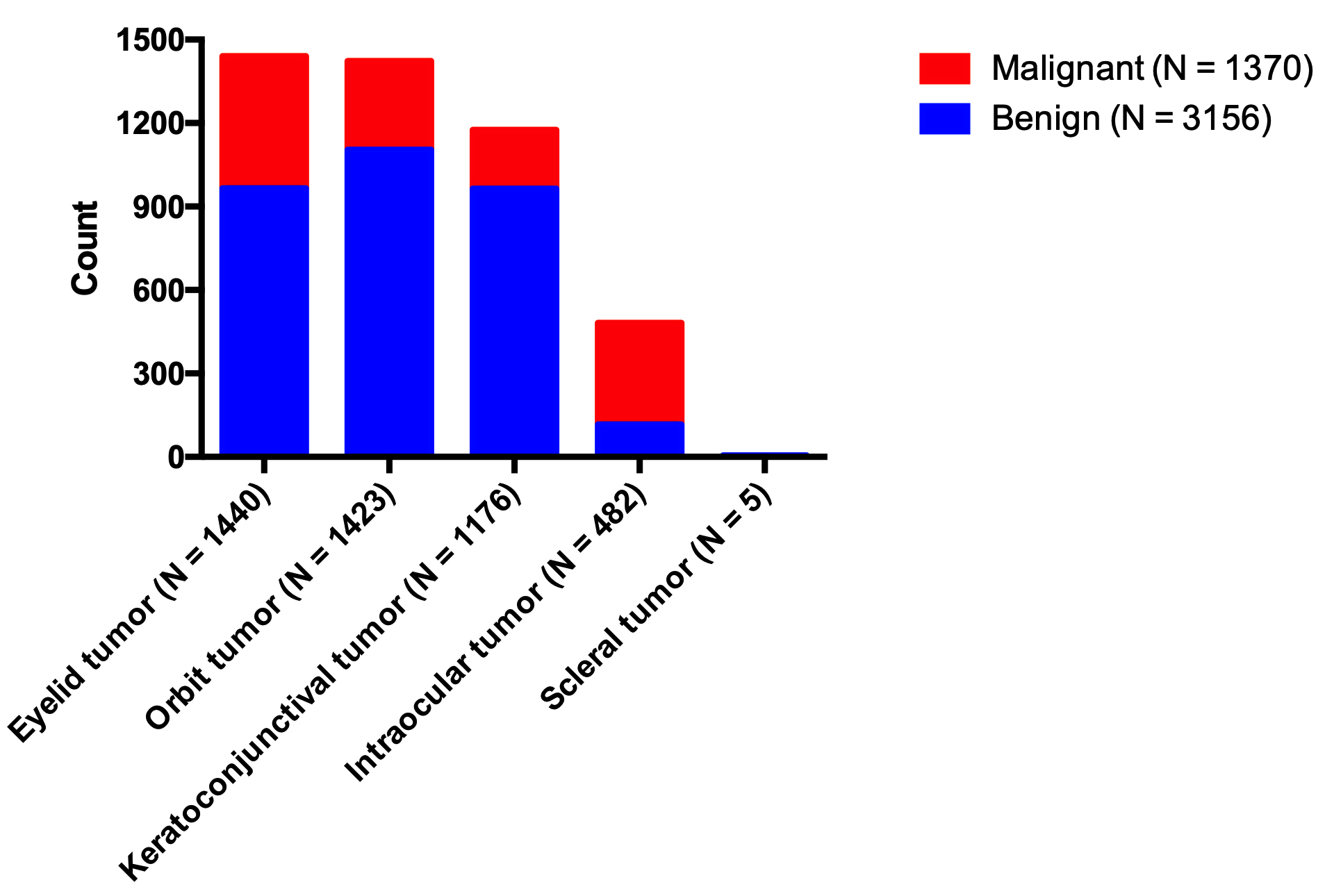 benign eye tumors, while 1370 eyes (30.3%) had malignant tumors. The