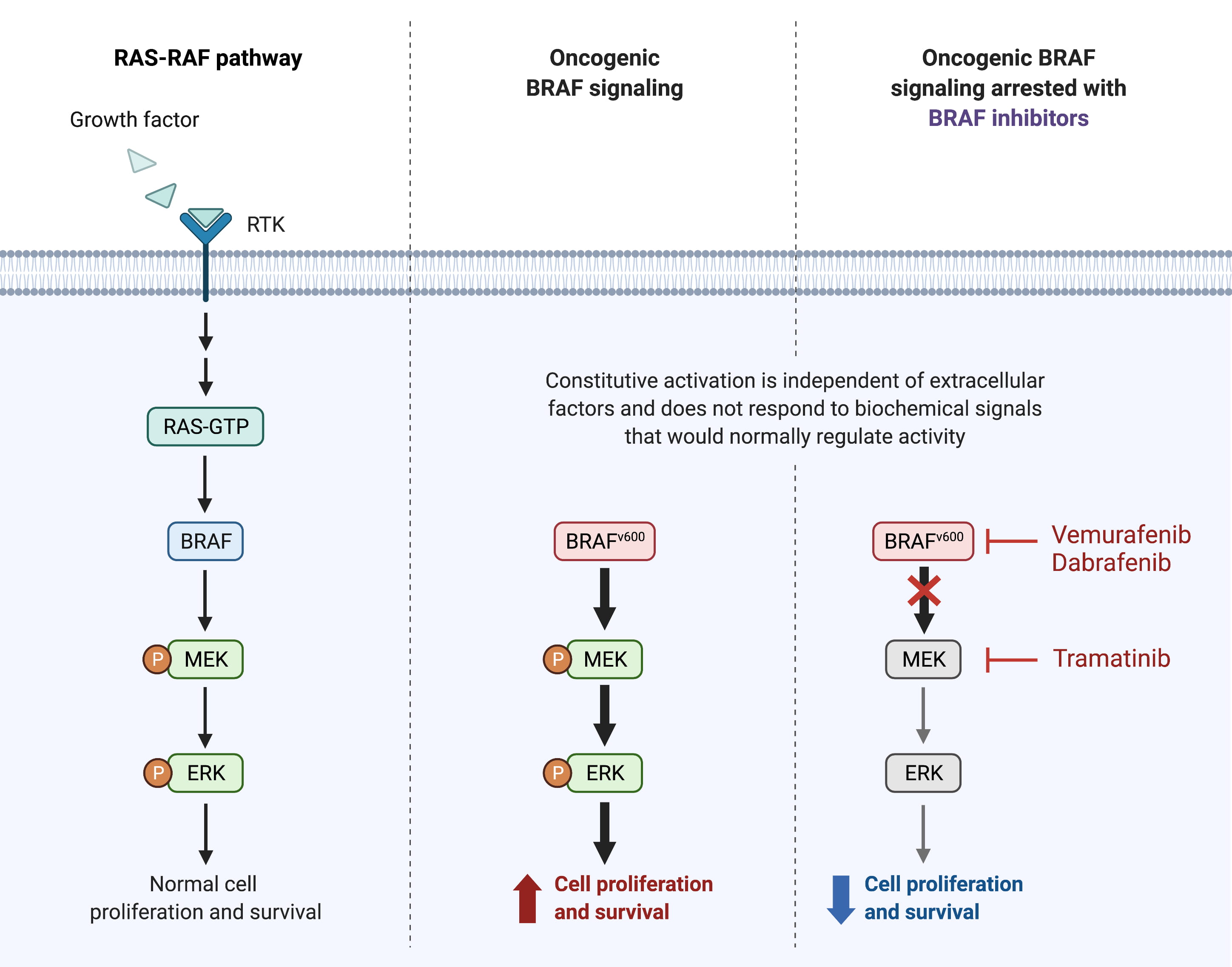 | NCT03224767 | II | BRAF Pathway | To study the combined used of BRAF and MEK inhibitors (vemurafenib and cobimetinib) for the treatment of BRAF |