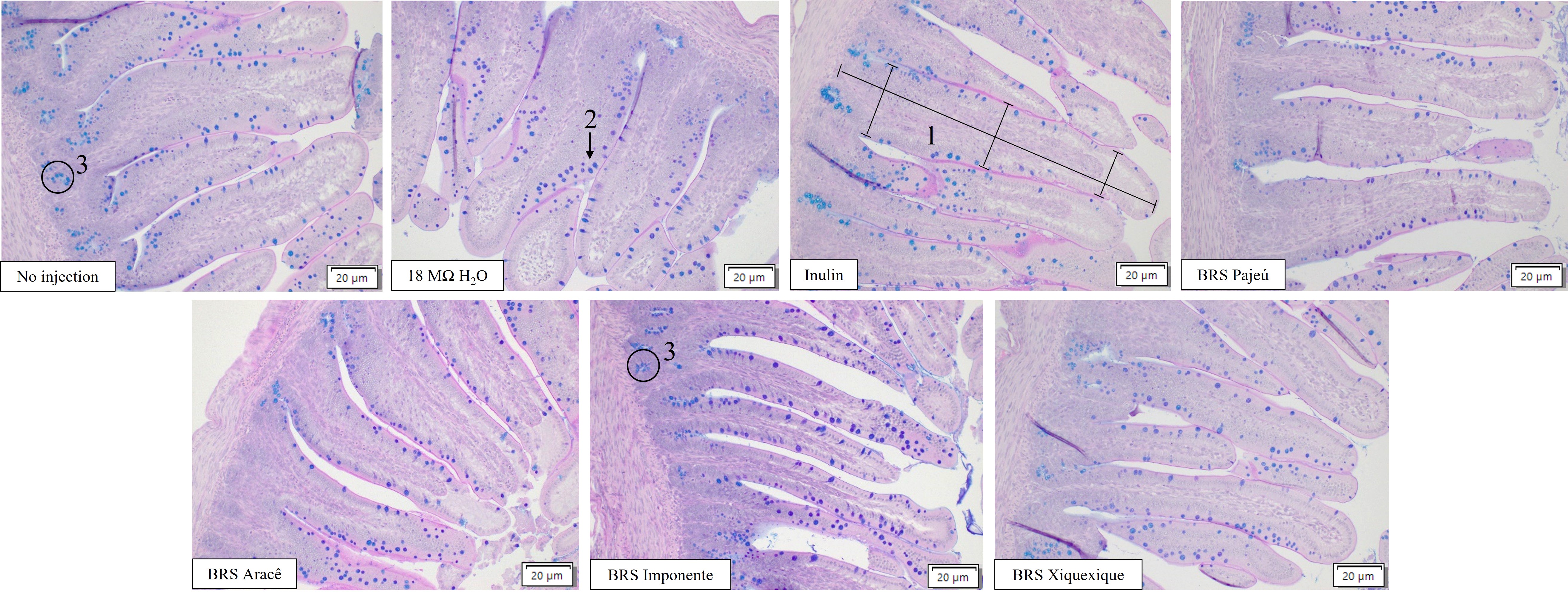 other experimental groups. All cowpea soluble extracts increased villi goblet