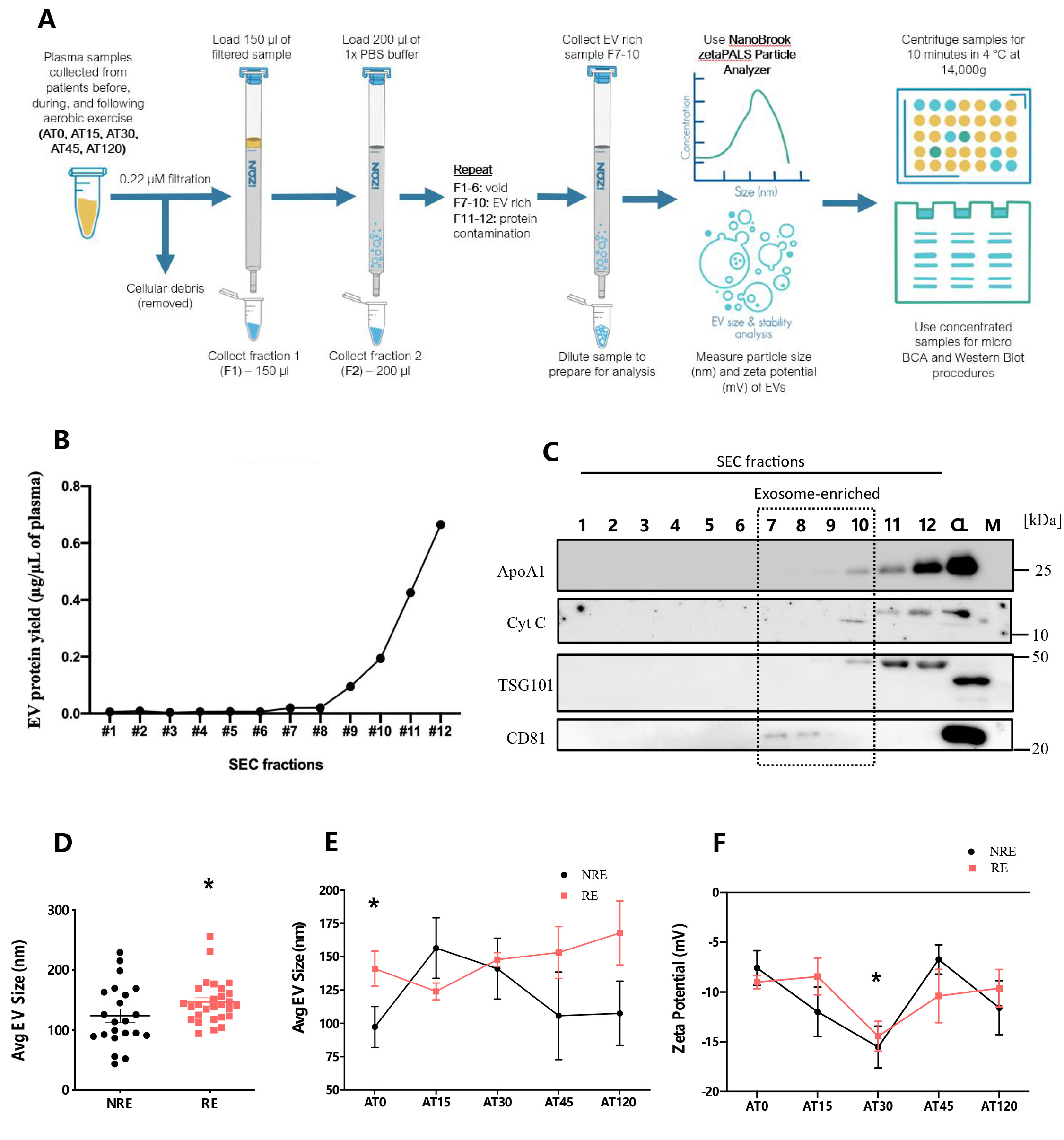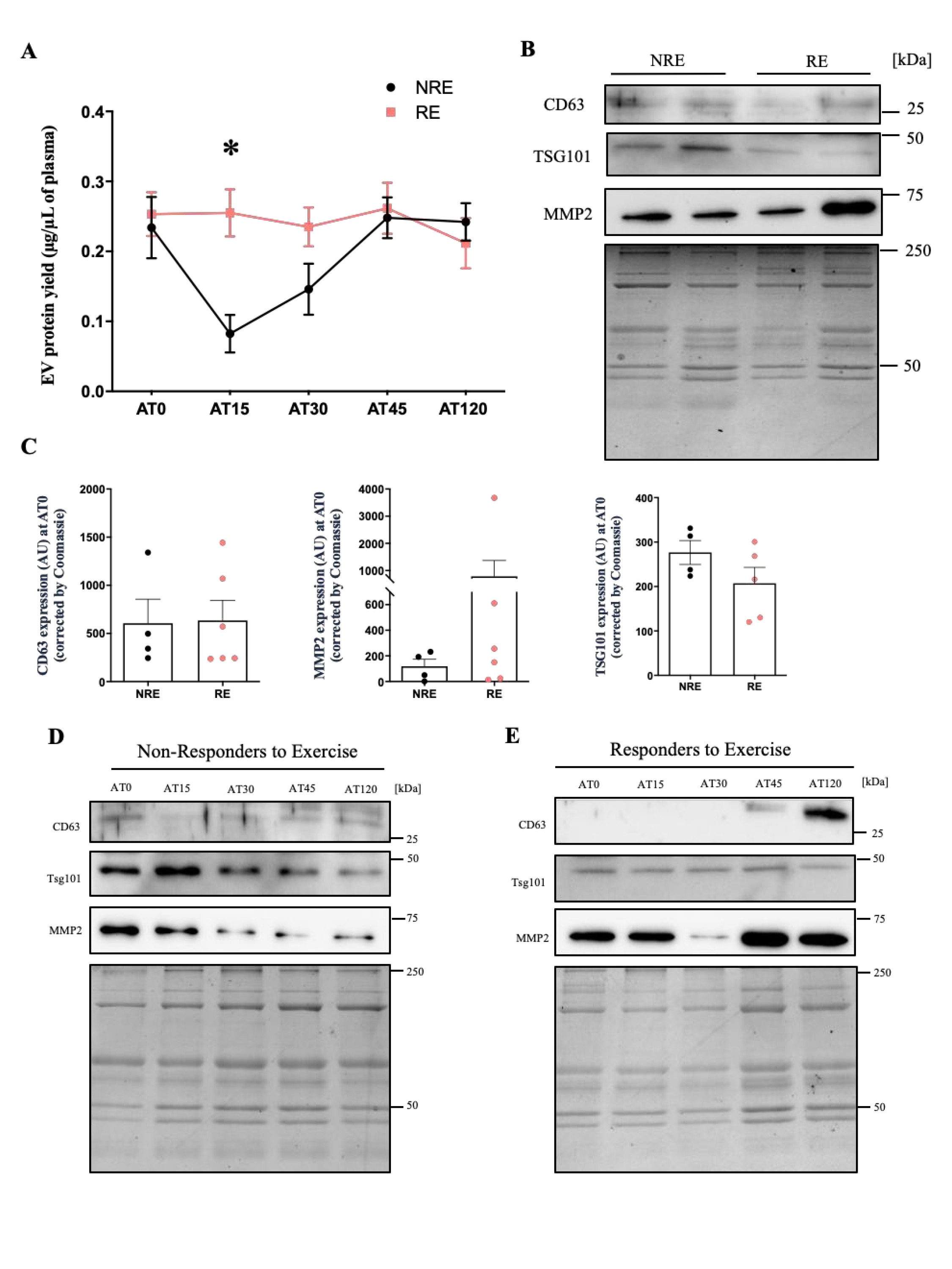 non-responders (NRE) and exercise responders (RE) were isolated by SEC and
