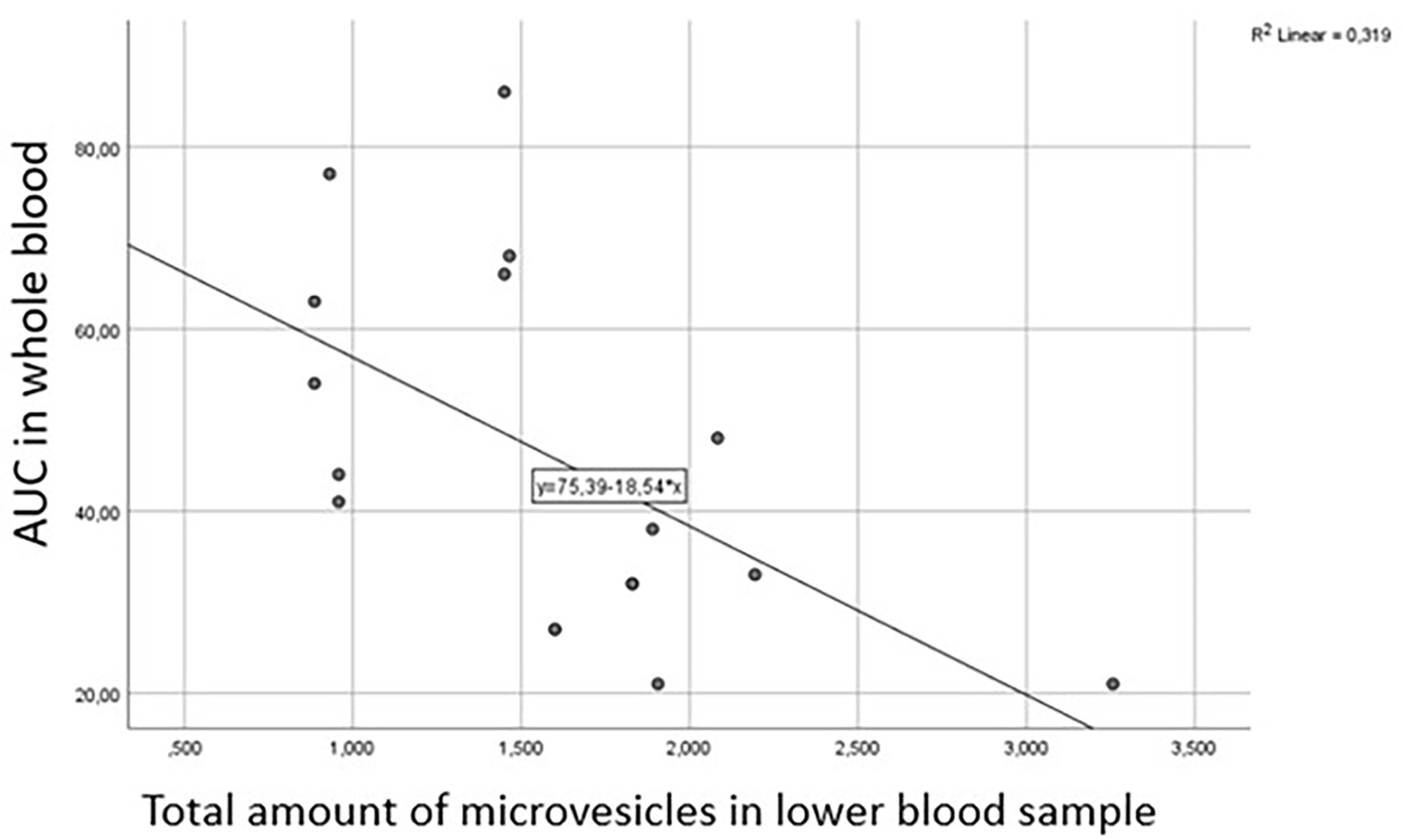 We analysed the correlation between MVs and aggregometry data. The platelet