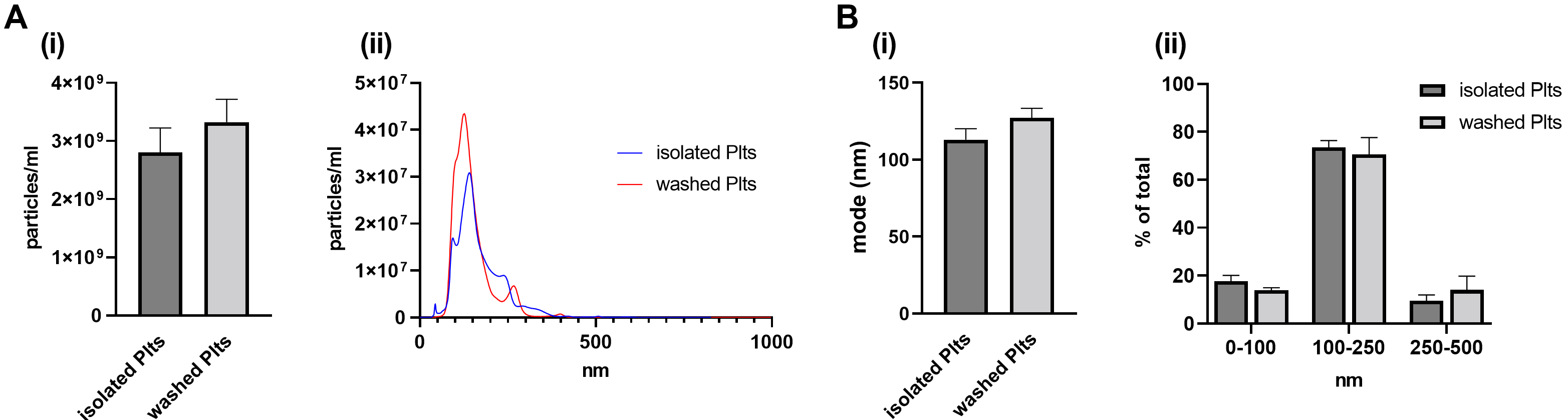 by NTA, is reported as particles/mL and (ii) representative NTA traces. (B) (i)