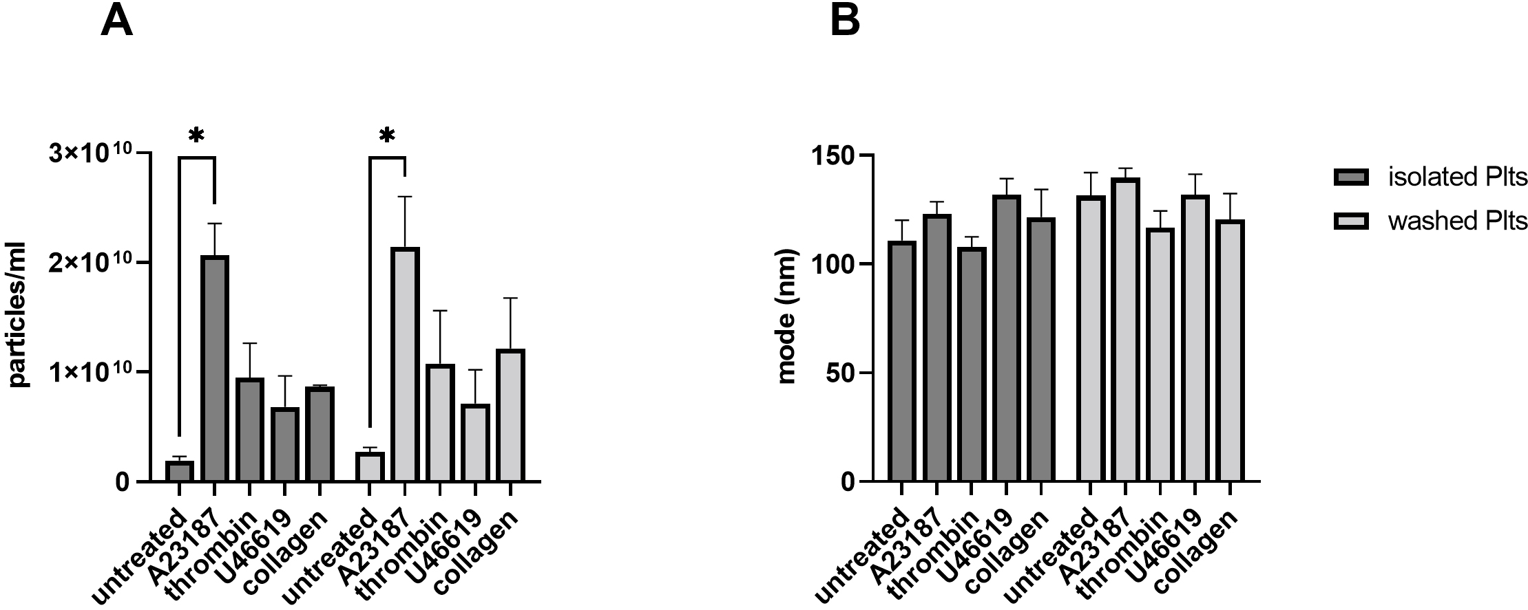 In this study, we hypothesize that the platelet isolation protocol may influence the release of PEVs, since it is known to have a relevant impact on the general functionality of platelets [3]. We have selected two protocols commonly used in literature and described in the materials and methods section. The two platelet preparations were defined as isolated platelets and washed platelets.