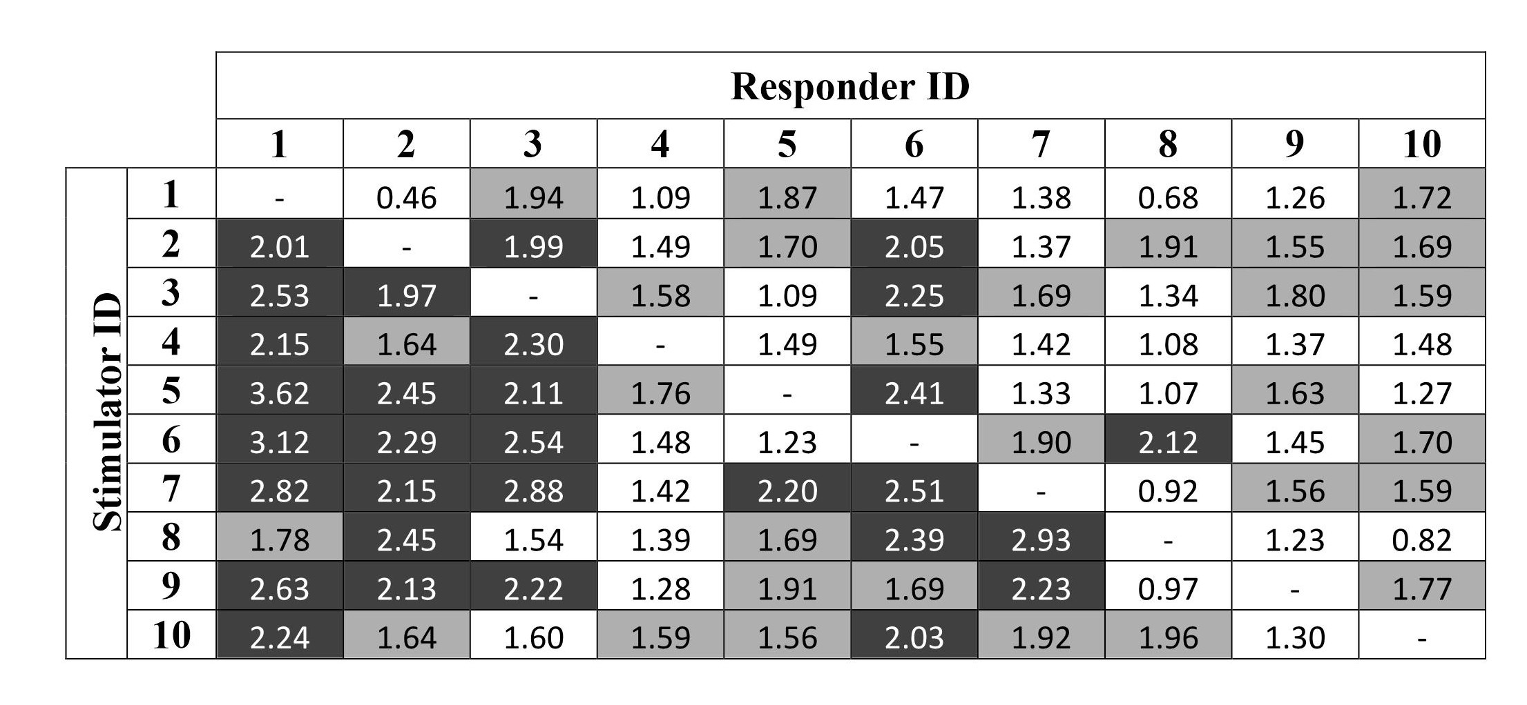 | Stimulator ID | 1 | 2 | 3 | 4 | 5 | 6 | 7 | 8 | 9 | 10 |