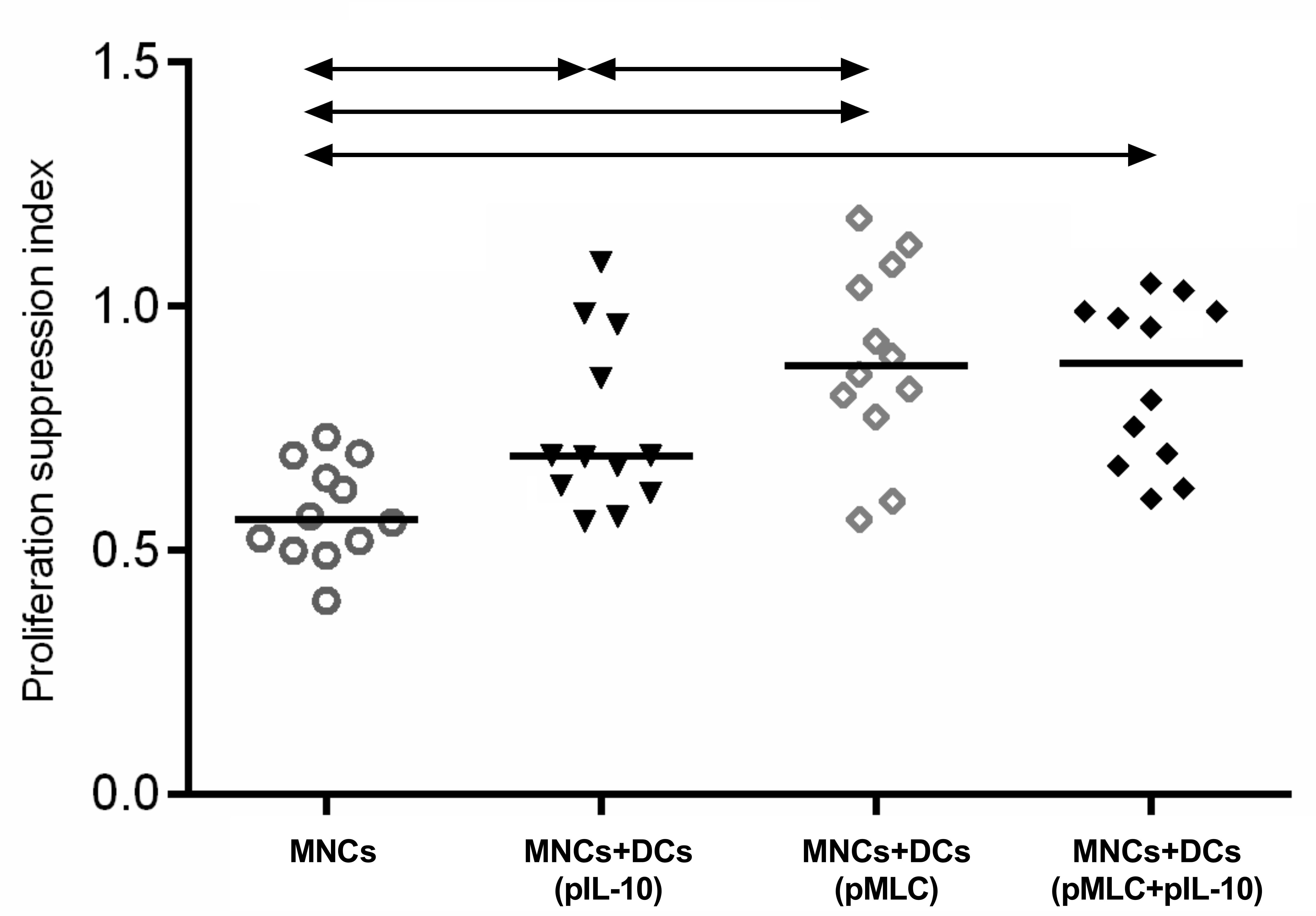 DCs to restrict the activation of autologous MNCs in response to stimulation by