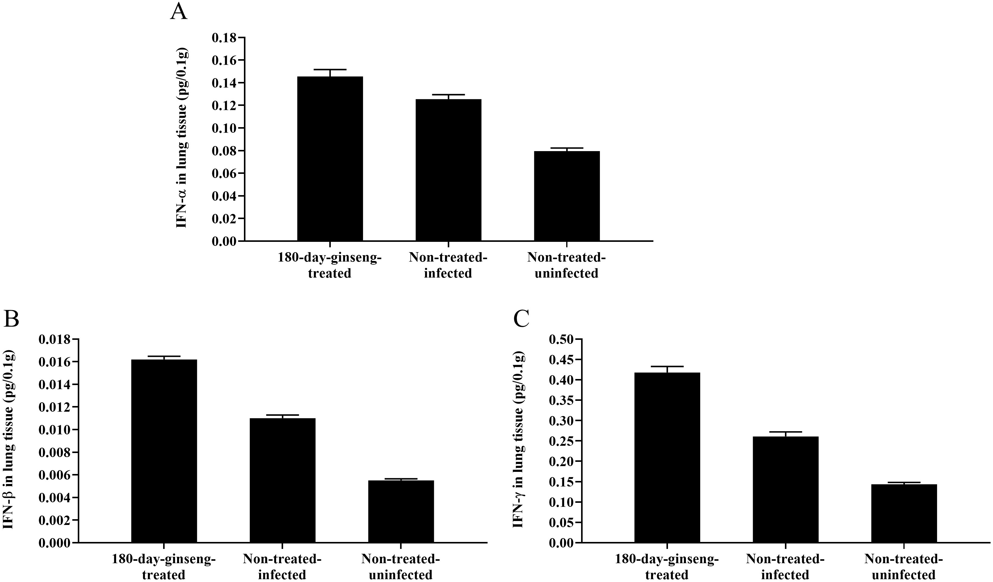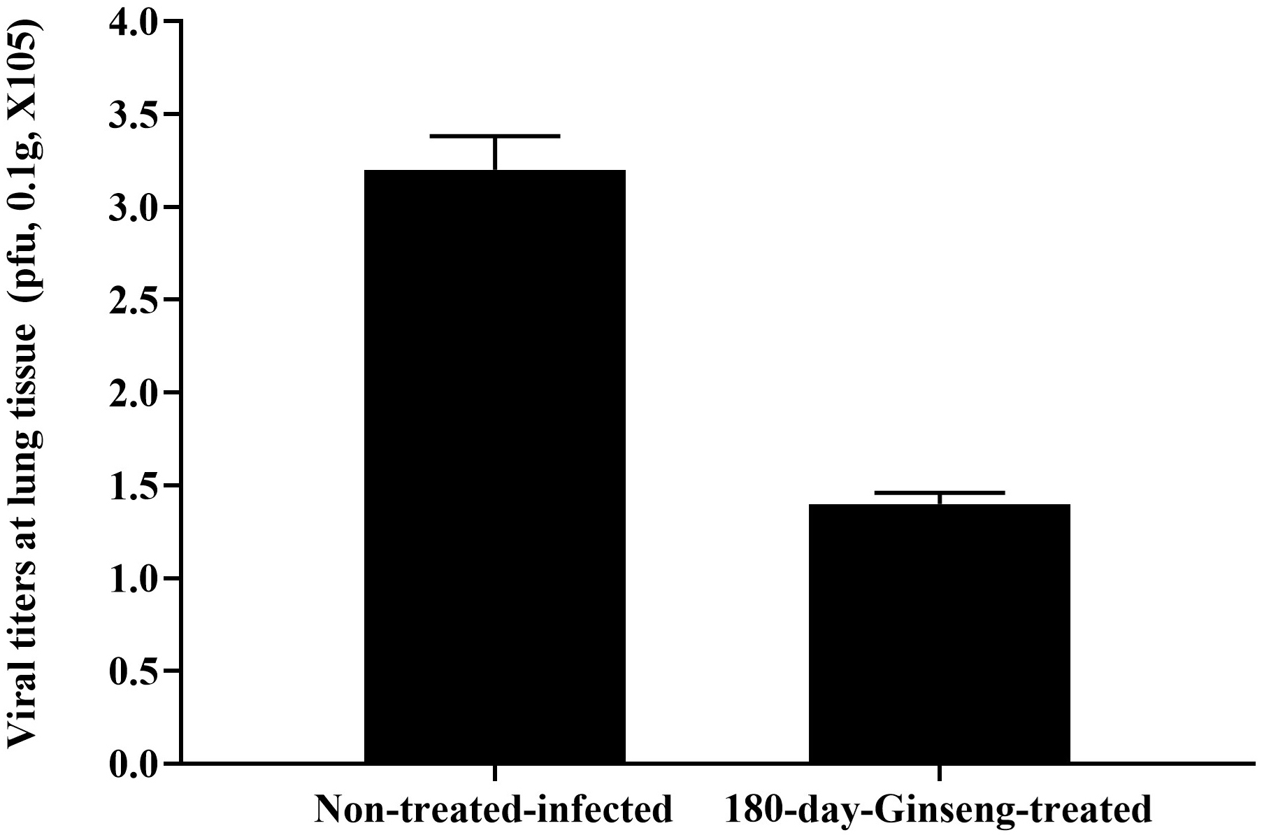 The mean viral titer was much lower in the lung tissues of ginseng-fed infected