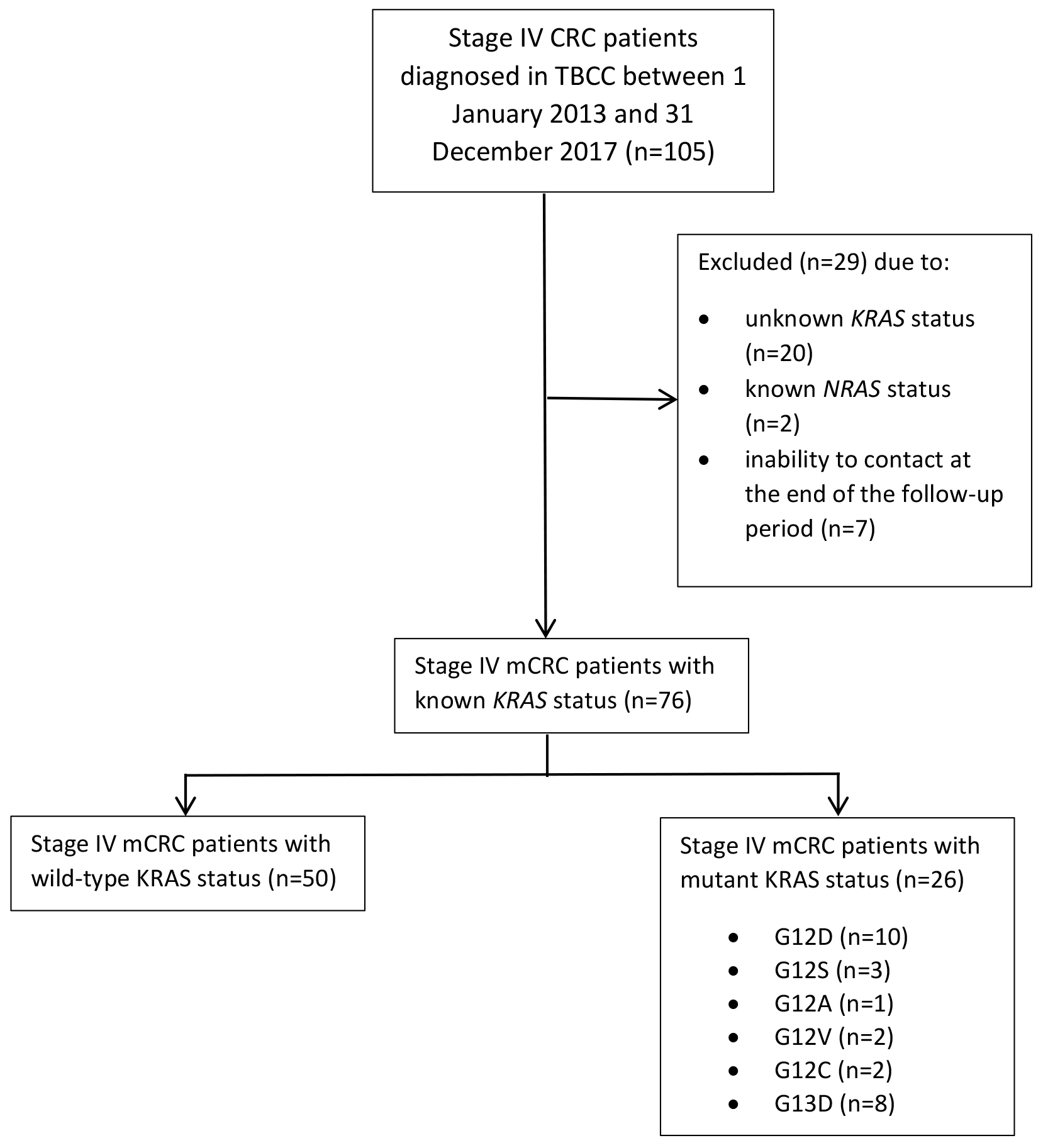 Fig. 1.Consort flow chart illustrating the numbers of Stage IV metastatic CRC patients and their known KRAS statuses.