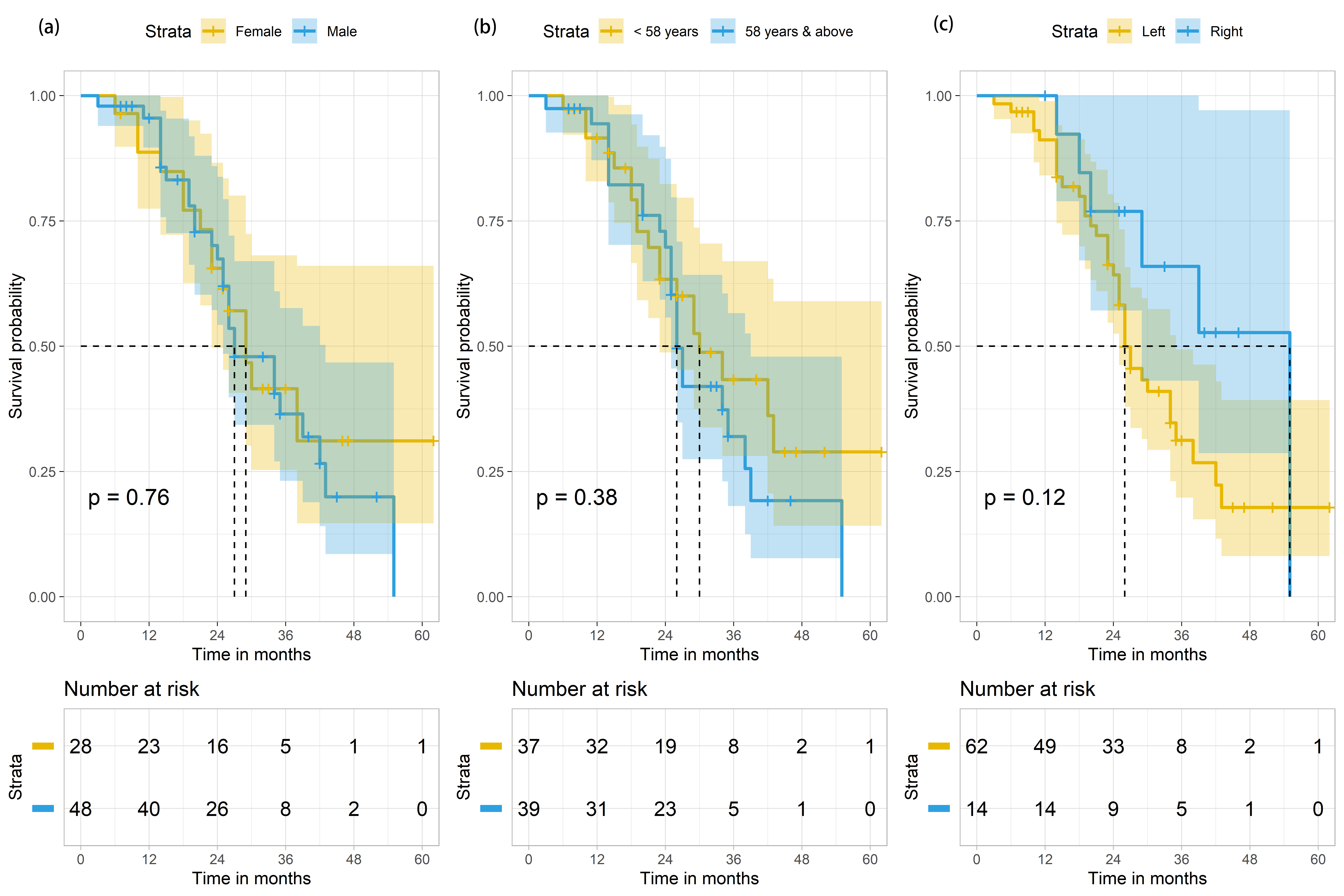 patients (n = 76) based on gender. p-value is derived from the log-rank