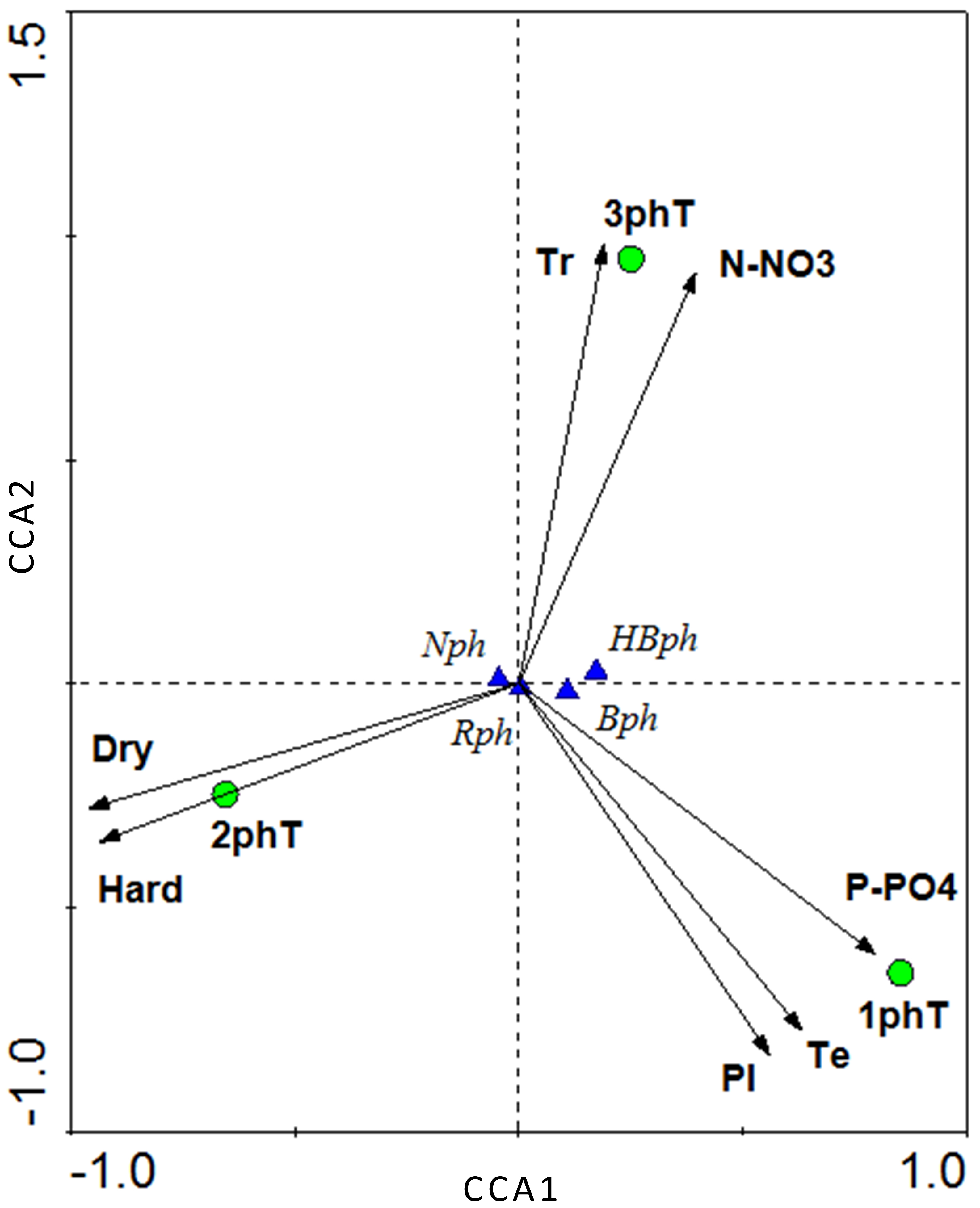 Fig. 13.Results of Canonical Correspondence Analysis for phytoplankton