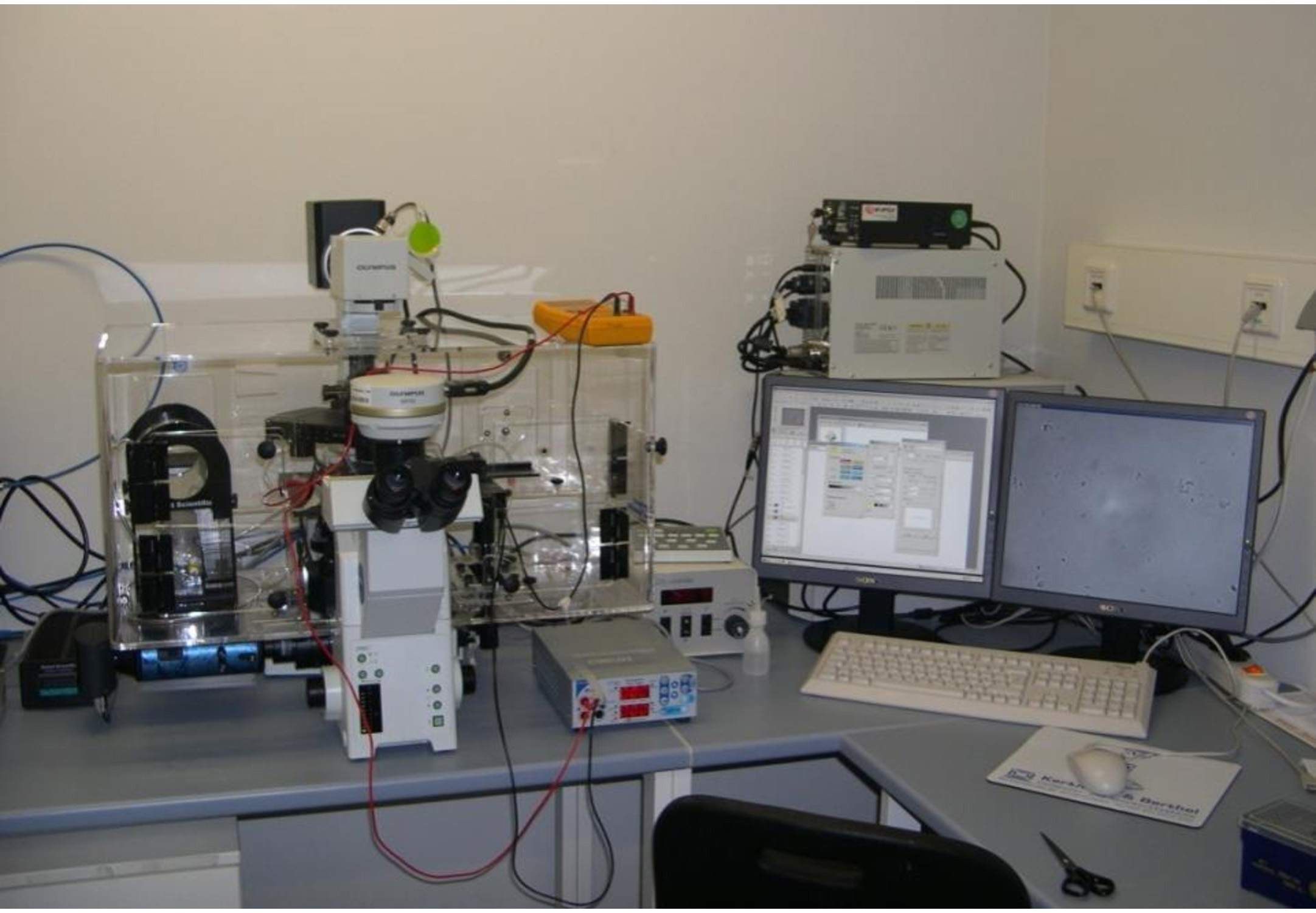 solution (0.9% NaCl), 2 agar-bridges (2% agar), vital microscope (Olympus IX81)