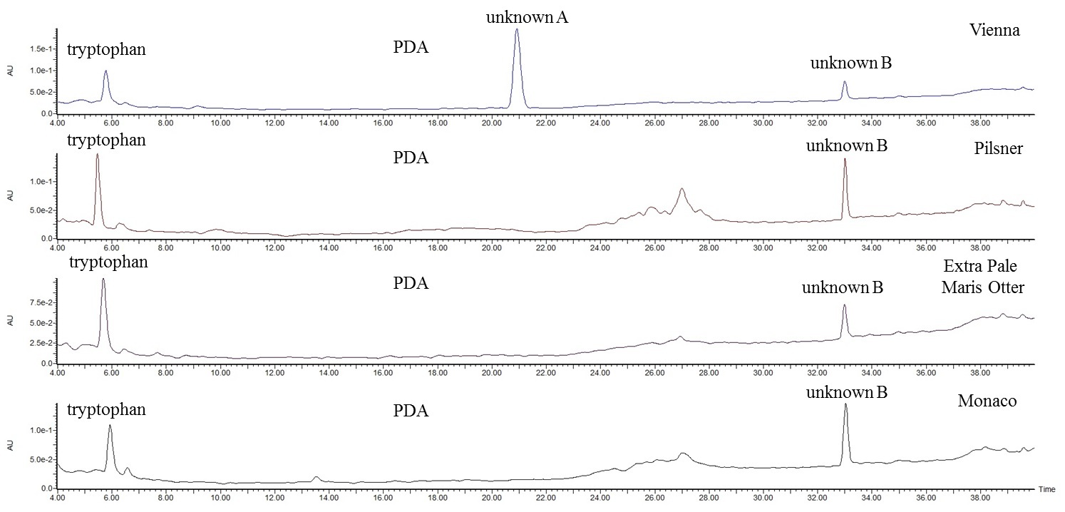 individual phenolic content, and tryptophan content. Aqueous extracts of malts