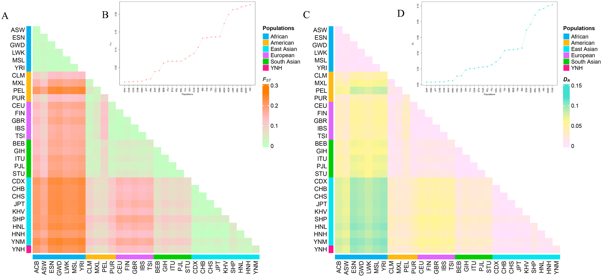 South Asian populations, American populations, and Chinese Yunnan Hani group are