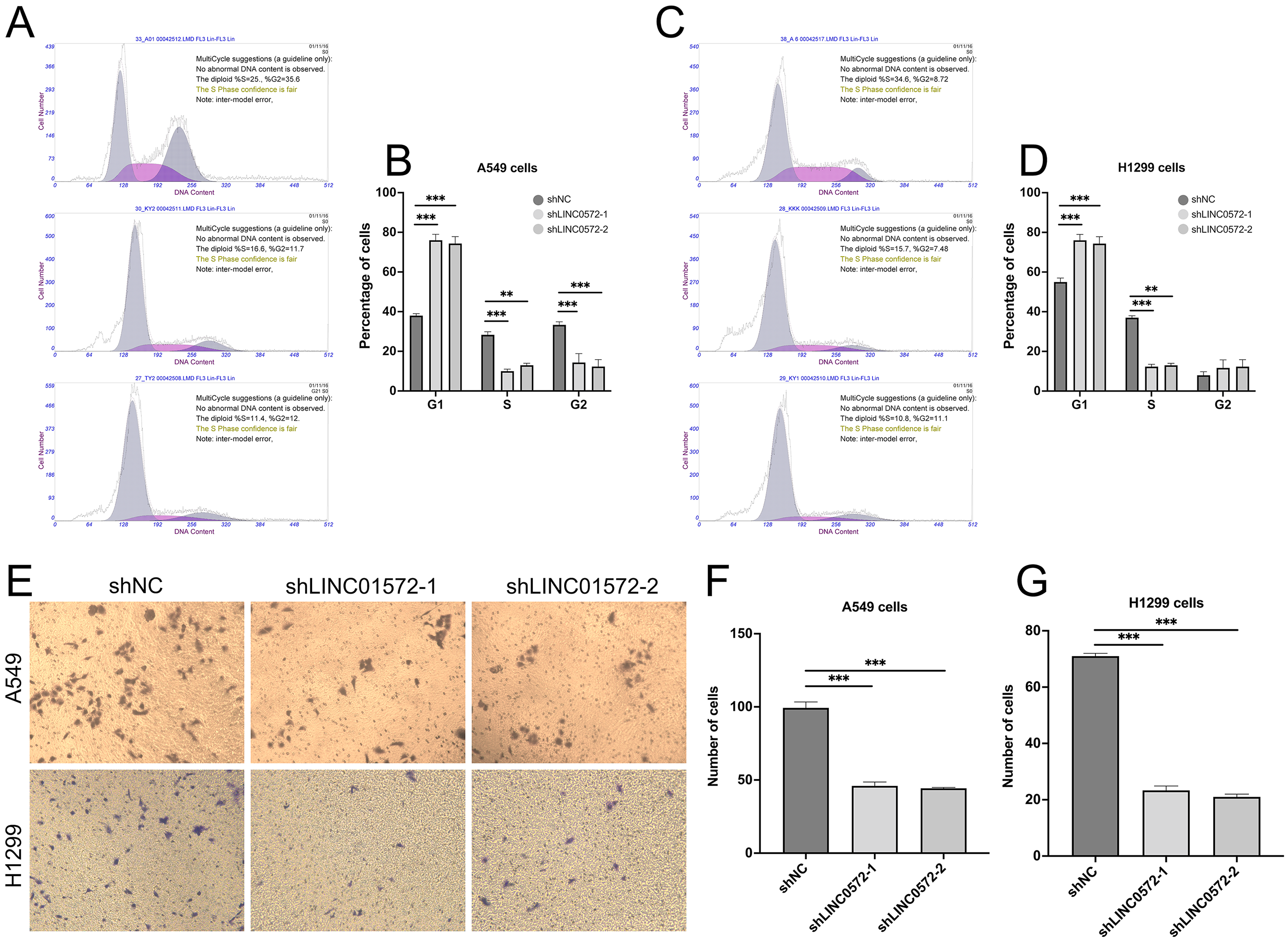 were performed with A549 and H1299 cells to assess the impact of LINC01572