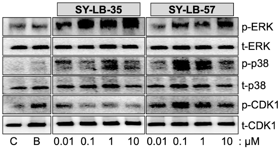 In response to SY-LB compounds, Western blots showed sustained activation of p38
