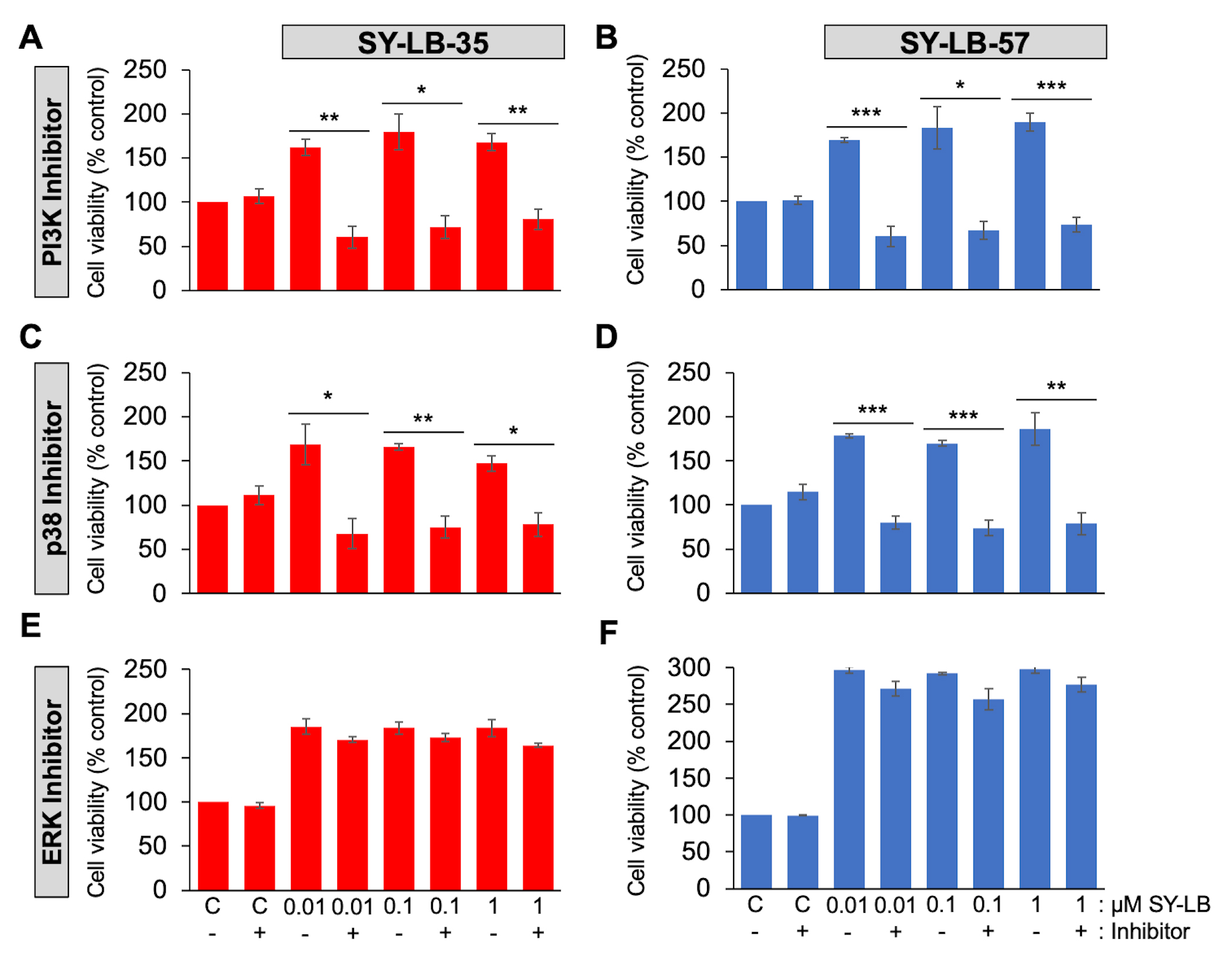 of cultures for 24 hours with the indicated concentrations of (A,D) SY-LB-35 and