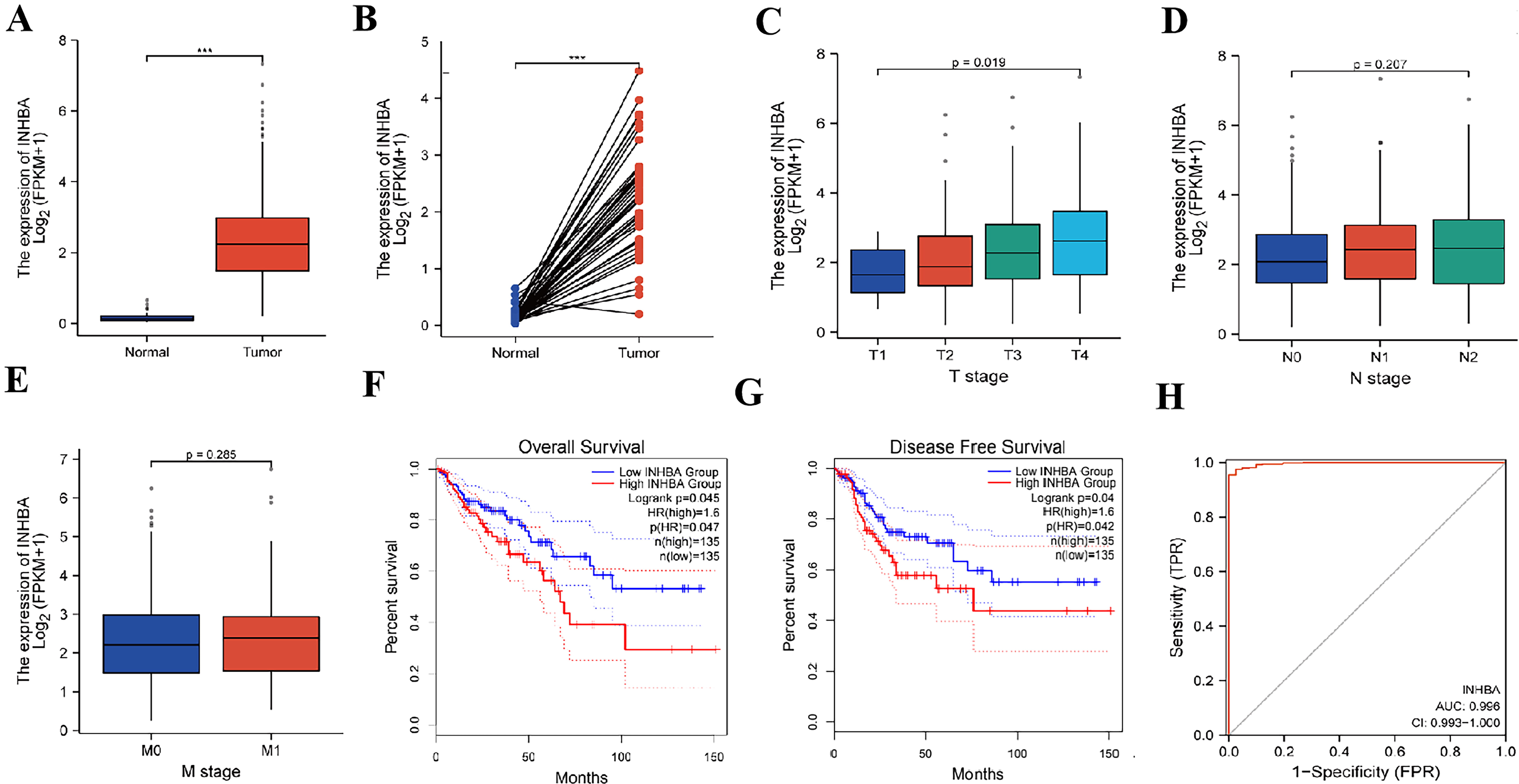 INHBA, the later the T stage of patients. The survival curve analysis