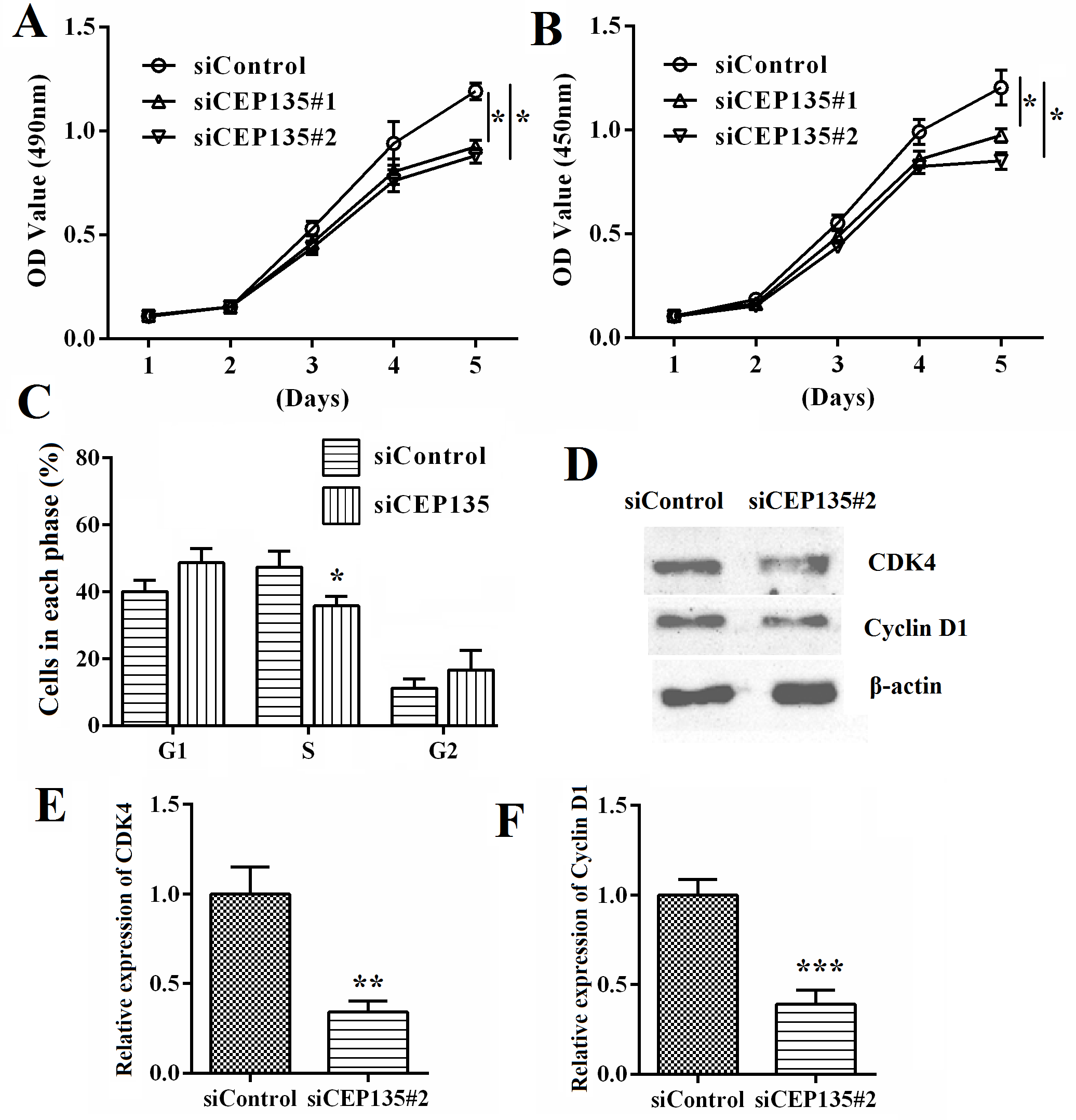 analysis showed the effects of CEP135 on the expression levels of (E) CDK4 and