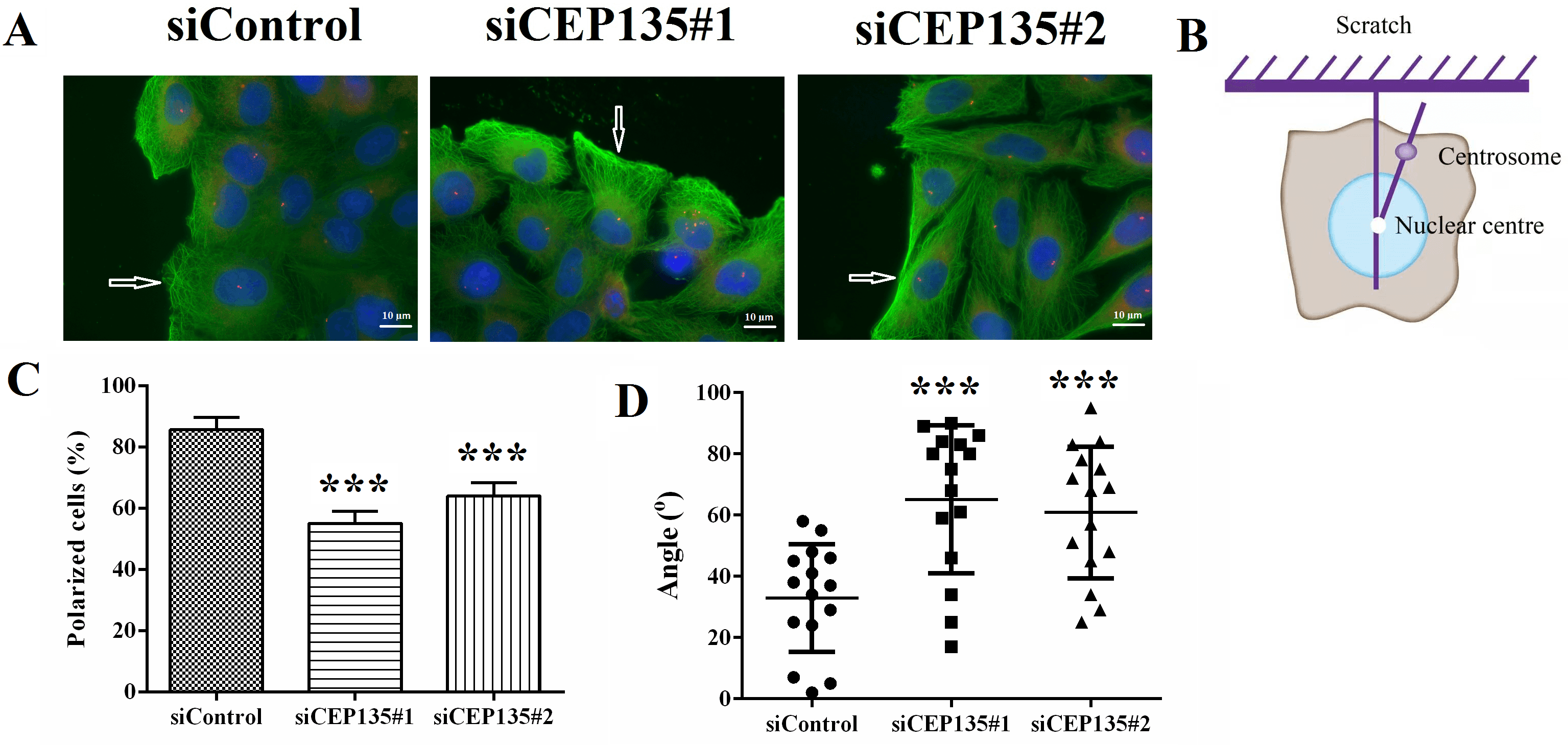cell polarization and migration. CEP135 knockdown significantly inhibited