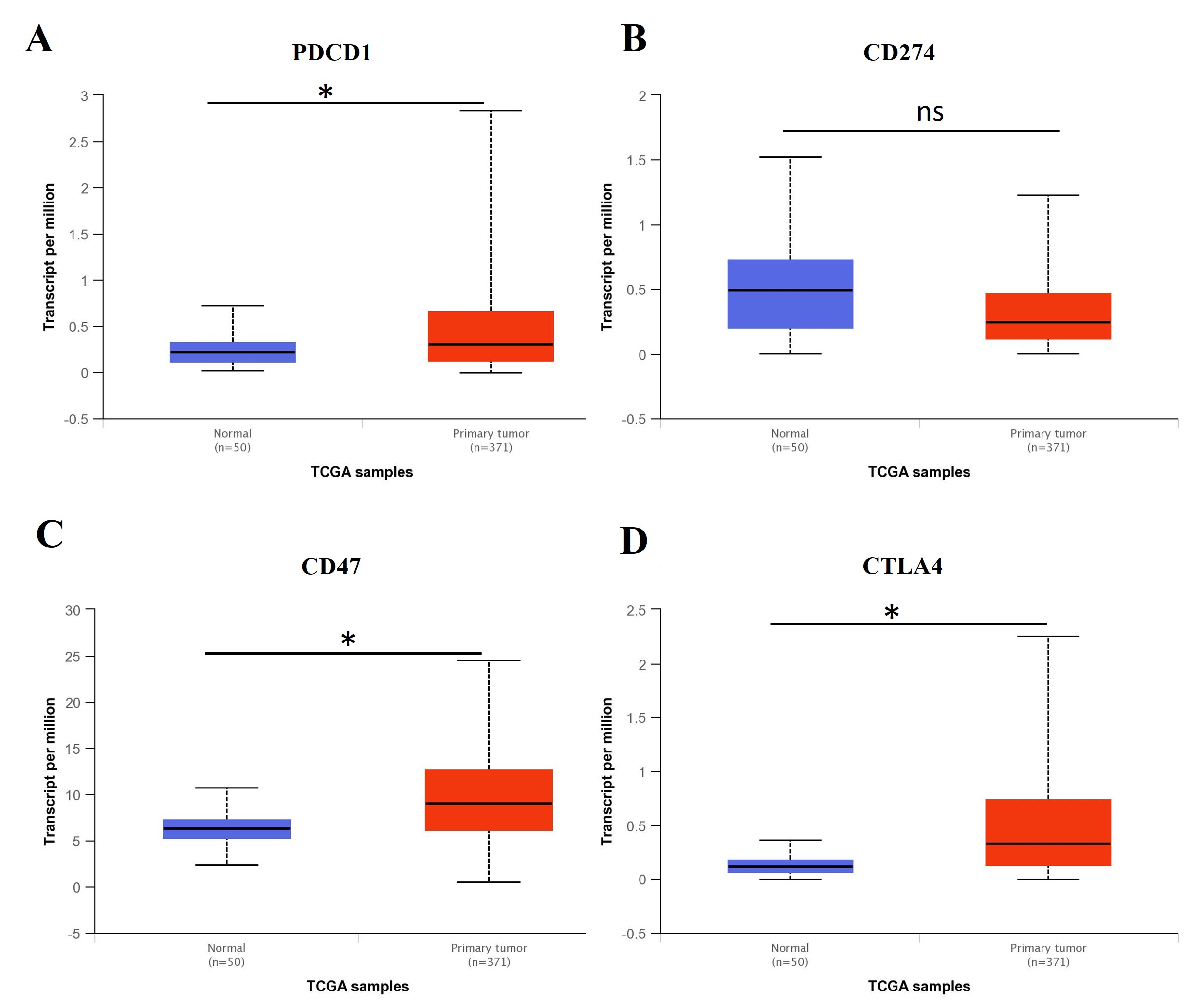 CD274, CD47, and CTLA4 were analyzed using UALCAN