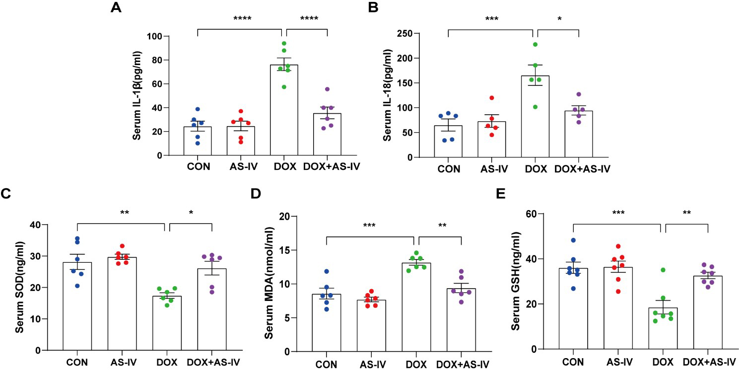 Fig. 3.AS-IV ameliorated the release of DOX-induced serum inflammatory