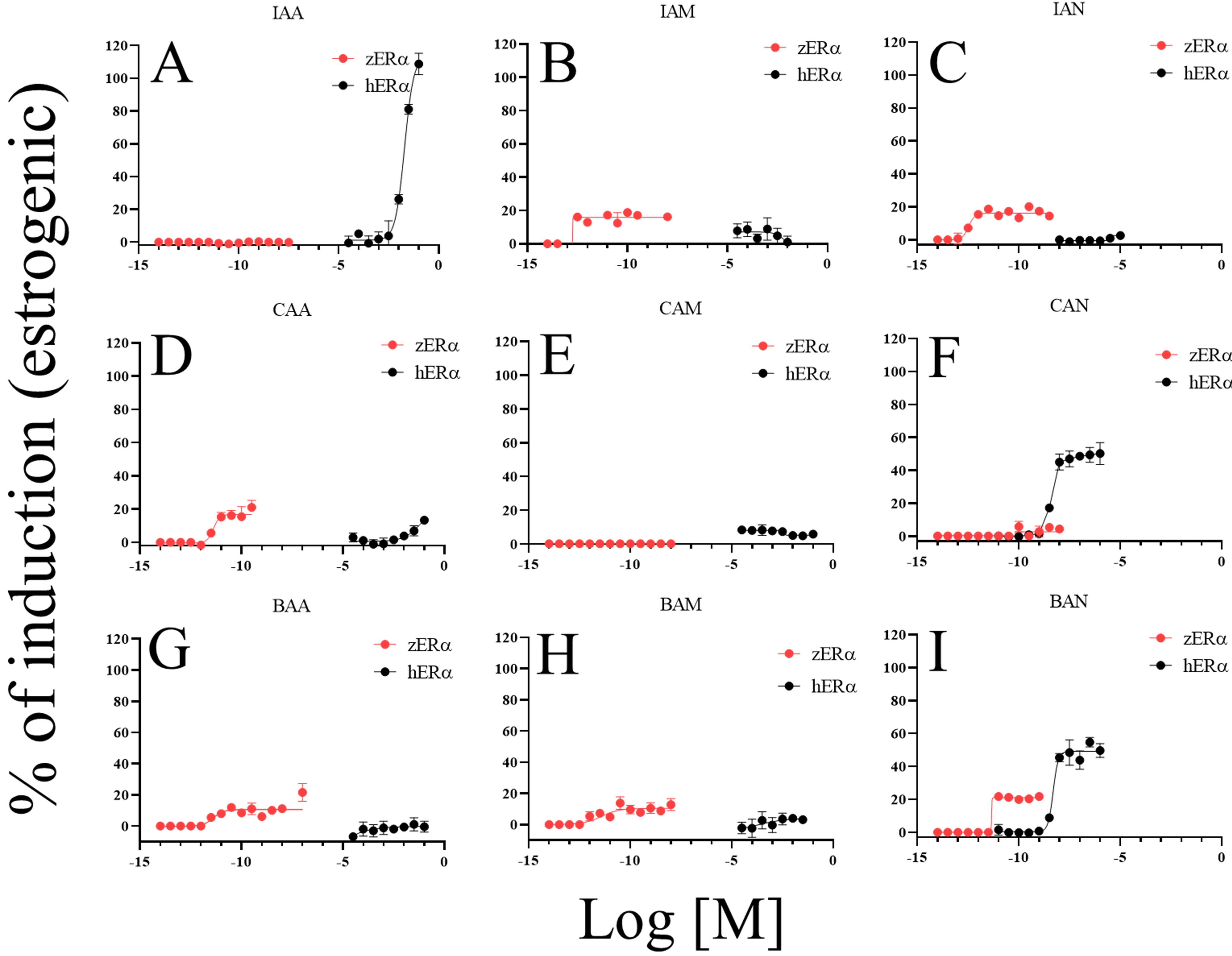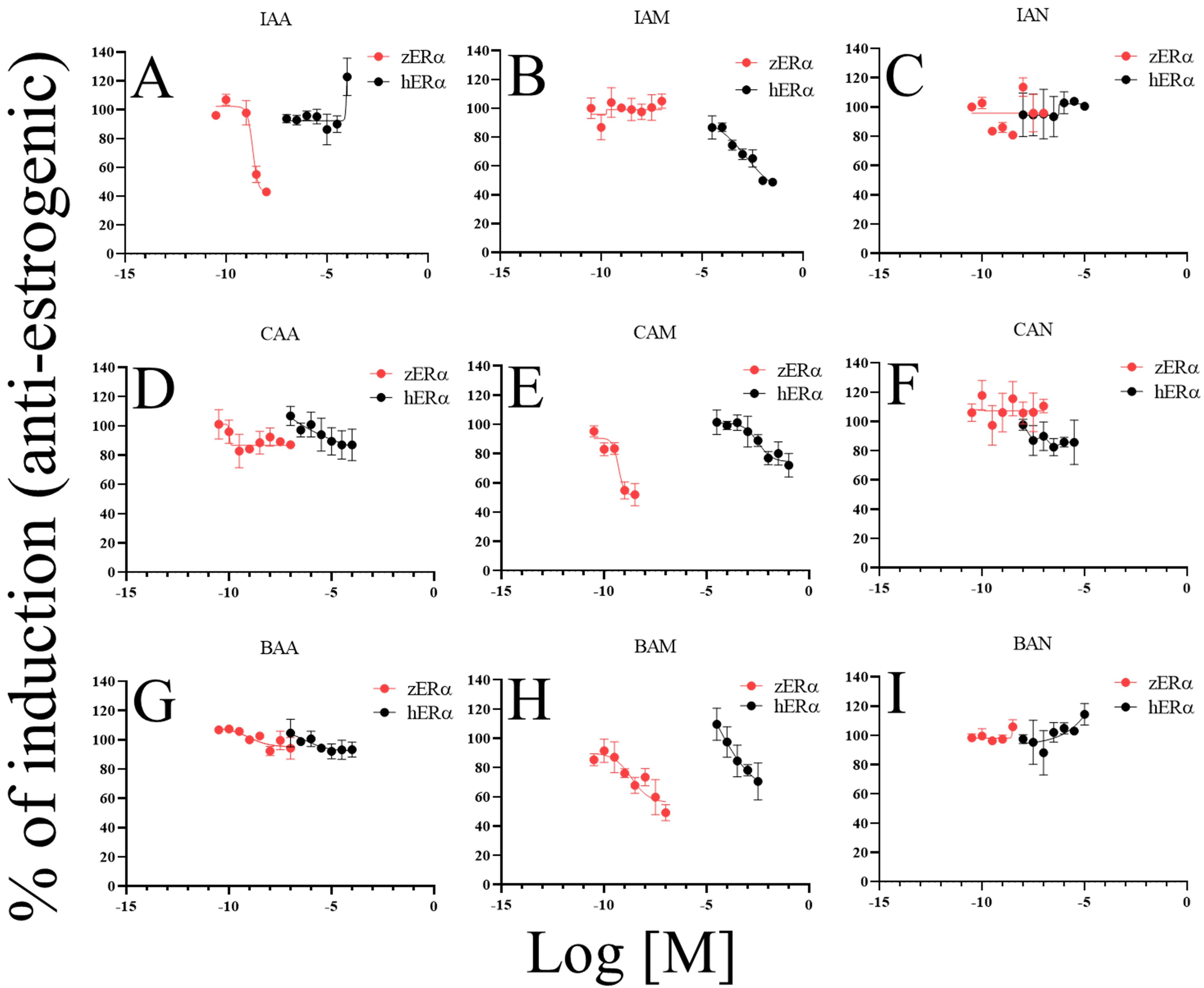 hER. Meanwhile, IAA, CAM, and BAM inhibited estrogenic activities of E2