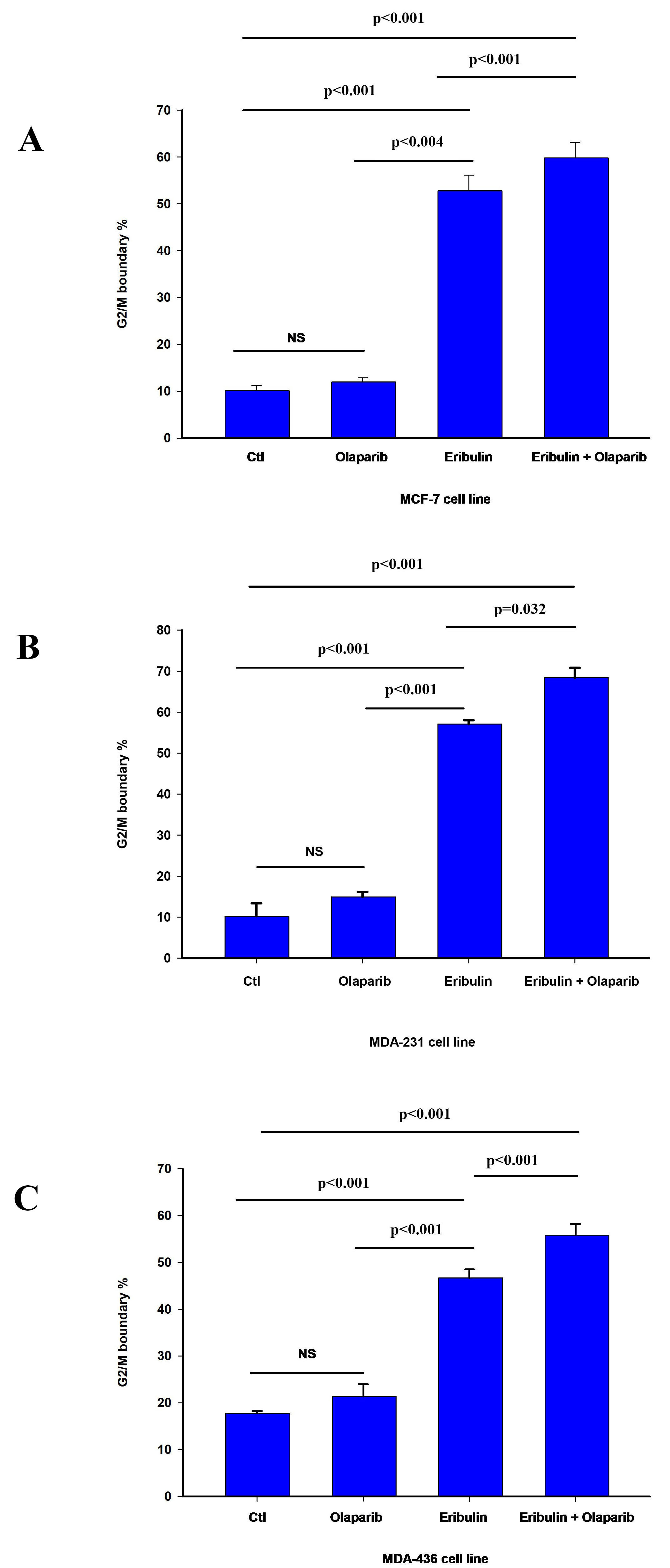 Fig. 2.Effect of olaparib on eribulin-induced G2/M cell cycle arrest.